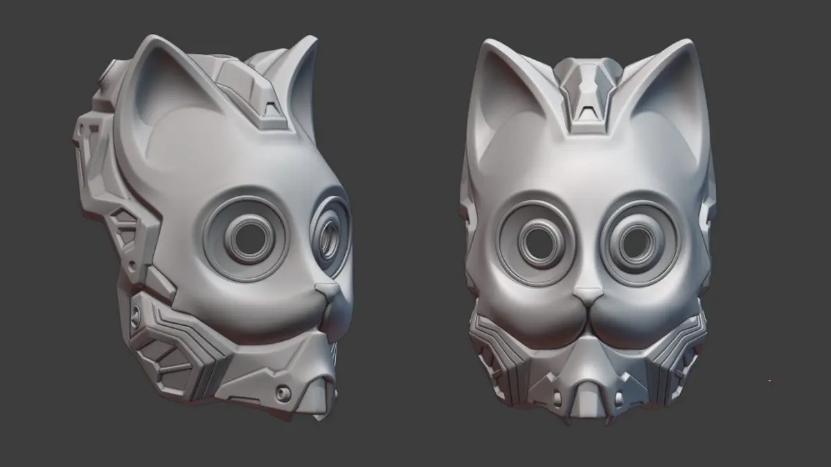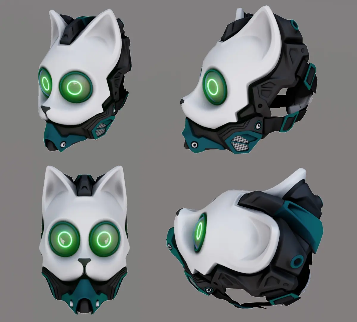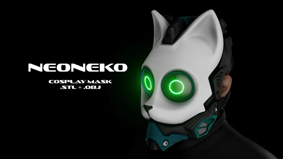 This is my personal design of futuristic cat mask. The mask will fit a head 15 to 16.5cm wide. The wall thickness of the model is 3mm. Ready for printing by parts, includes obj, stl.Added eyes v2.zip which includes the next version of eyes O, X and heart.