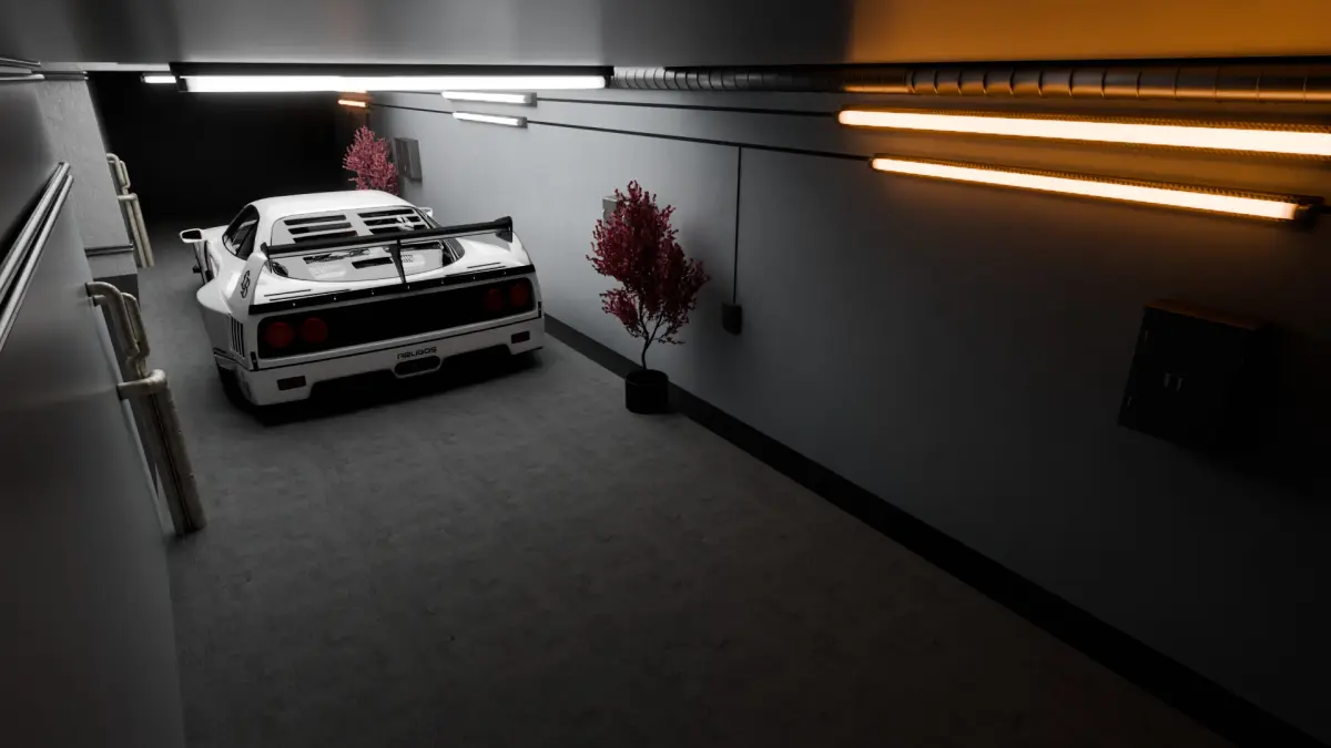 A full CGI environment created entirely in Blender, inspired by a minimalist underground garage infused with subtle Japanese aesthetics.