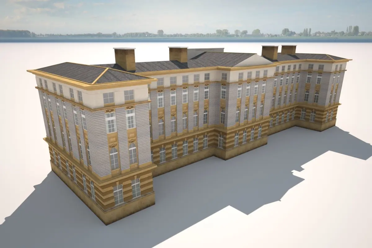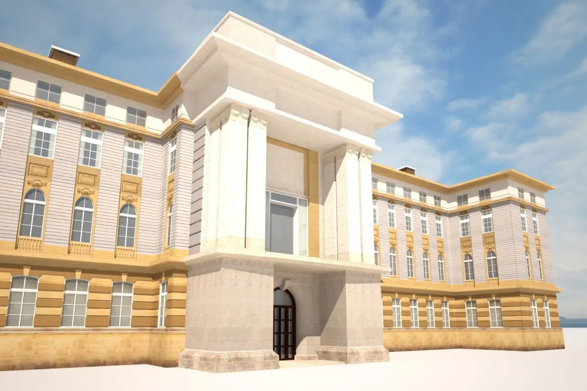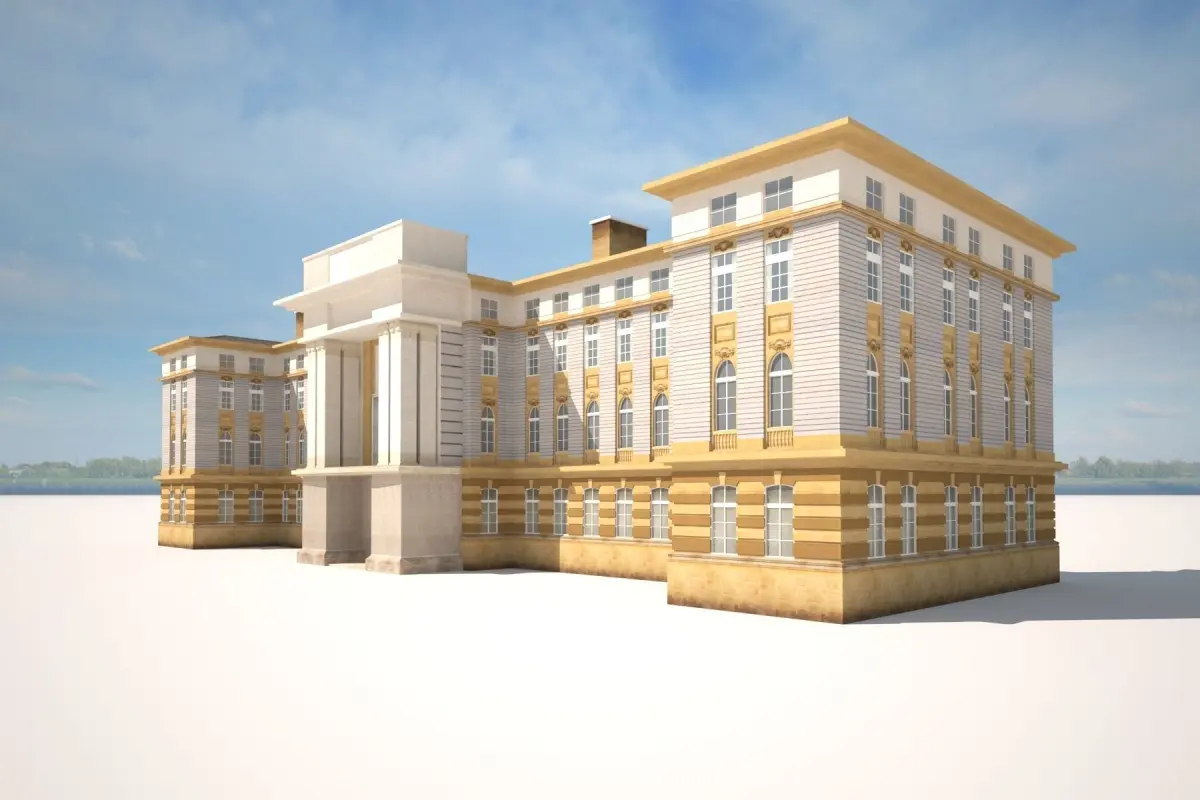 High Poly 3d model of Neoclassical building. Architecture from 1914