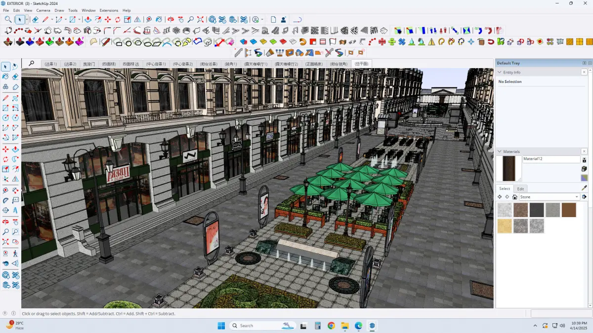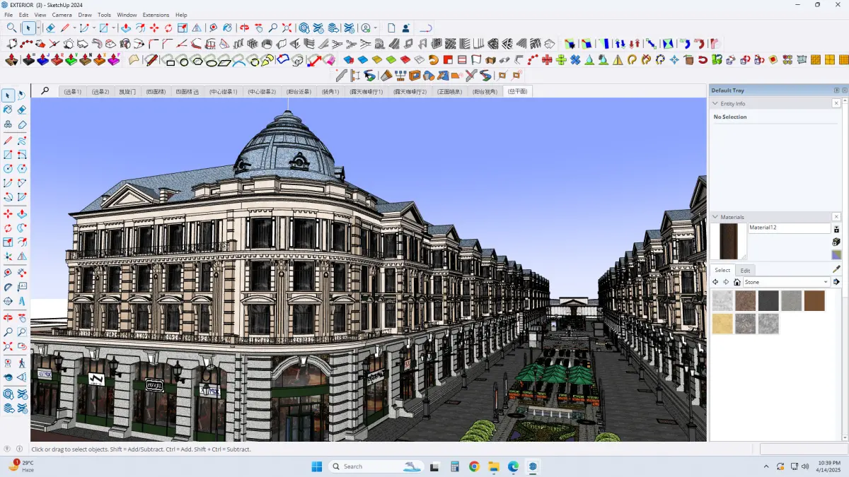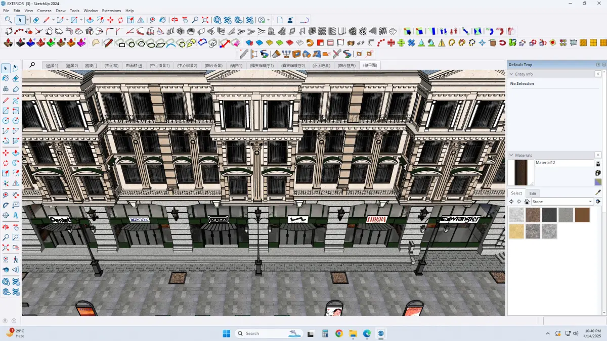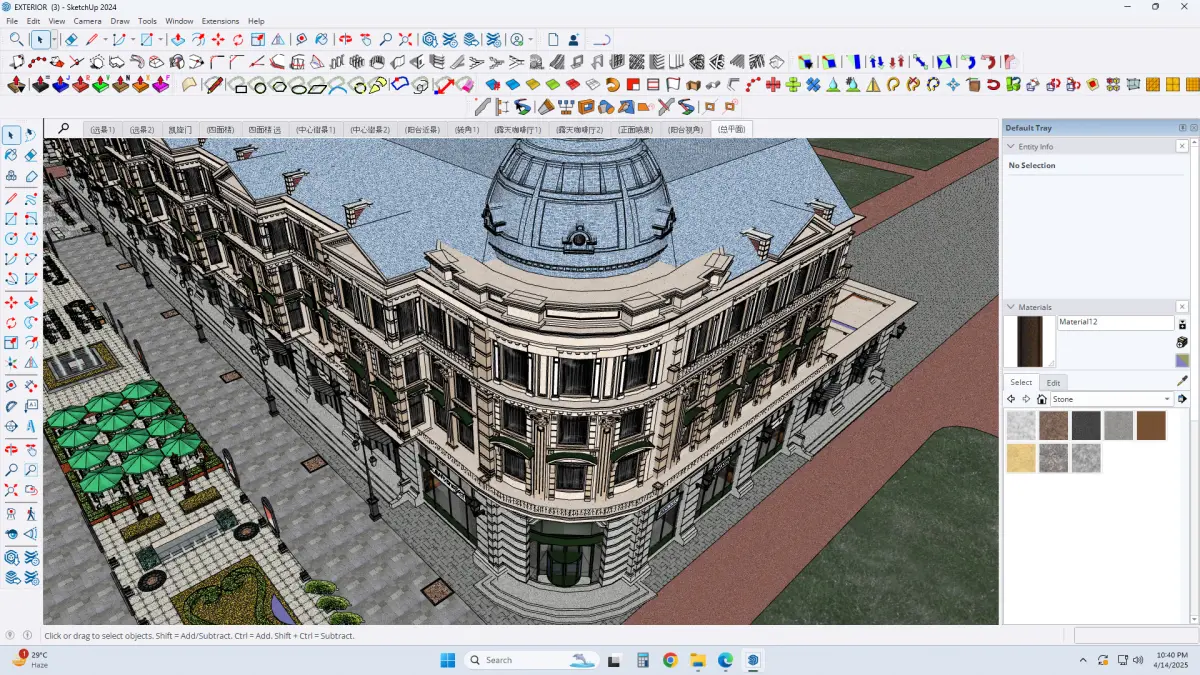 neoclassical building facade with landscapeinclude pavers, planters, street landscape and buildings