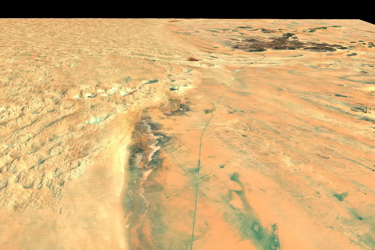Terrain model of a region in Suadi Arabia, where project NEOM LINE is under development. THE LINE, a revolution in urban living at NEOM, and a blueprint for how people and planet can co-exist in harmony.