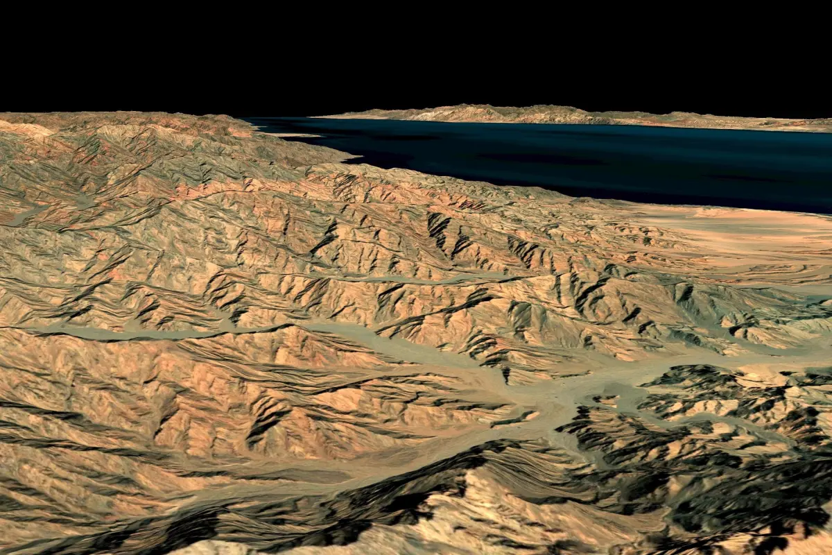 Terrain model of a region in Suadi Arabia, where project NEOM LINE is under development. THE LINE, a revolution in urban living at NEOM, and a blueprint for how people and planet can co-exist in harmony.