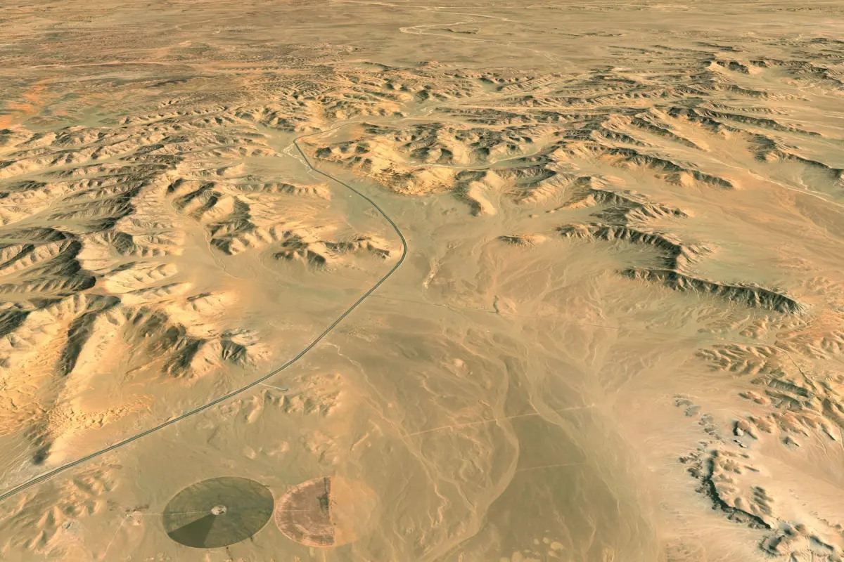 Terrain model of a region in Suadi Arabia, where project NEOM LINE is under development. THE LINE, a revolution in urban living at NEOM, and a blueprint for how people and planet can co-exist in harmony.