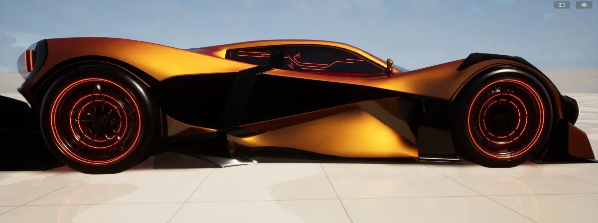 Futuristic SilhouetteInspired by sci-fi aesthetics, the car’s silhouette resembles a stealth fighter jet. The roofline tapers dramatically toward the rear, emphasizing speed and agility. The gull-wing doors open upward, revealing a cockpit that feels like it belongs in a spaceship.