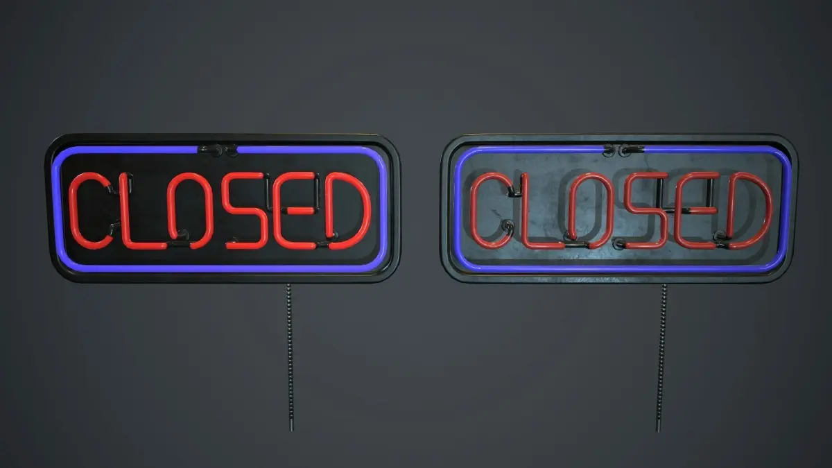Low poly Neon Closed Sign and Lamp with PBR Textures.
