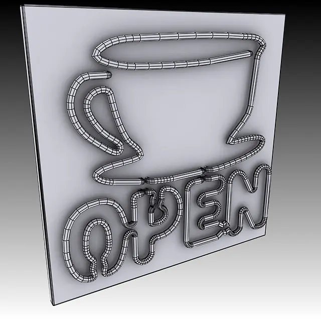 High poly 3d model of a Neon Coffee Open Sign. Utilizes only standard 3ds max procedural materials.
