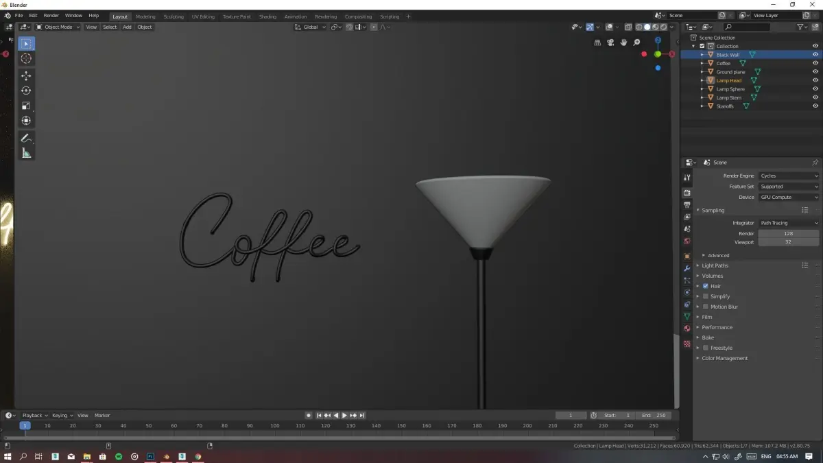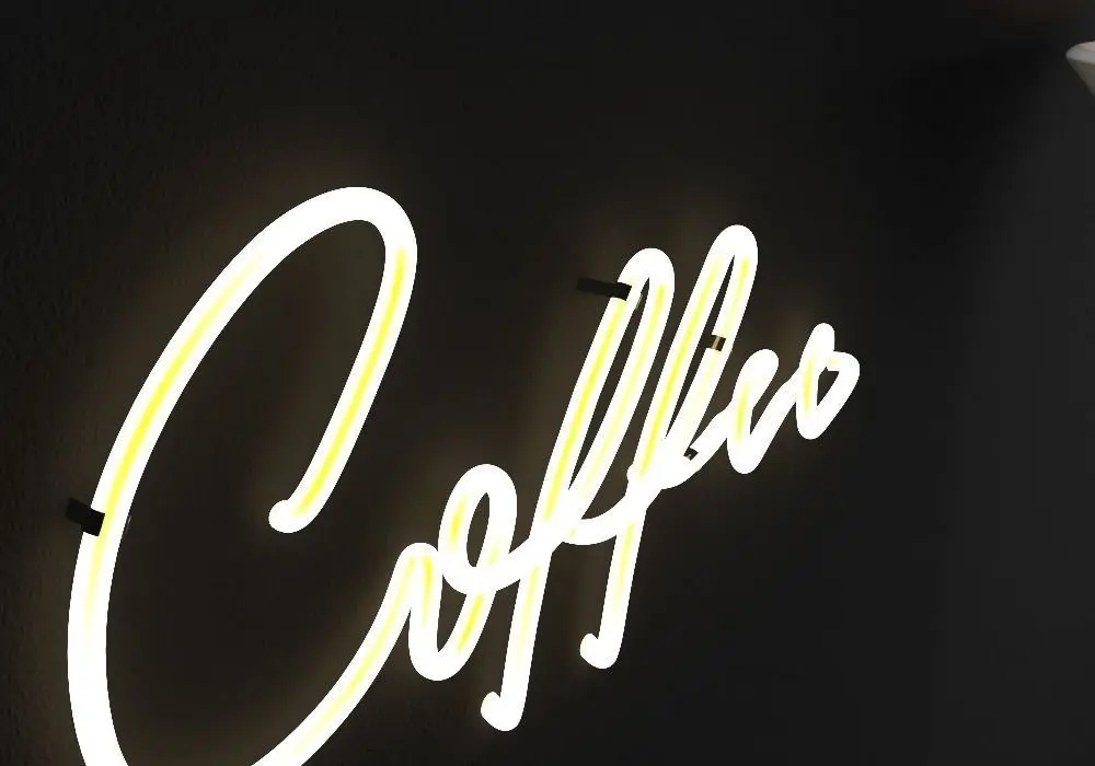 Neon Coffee Sign with a simple fan and simple scene