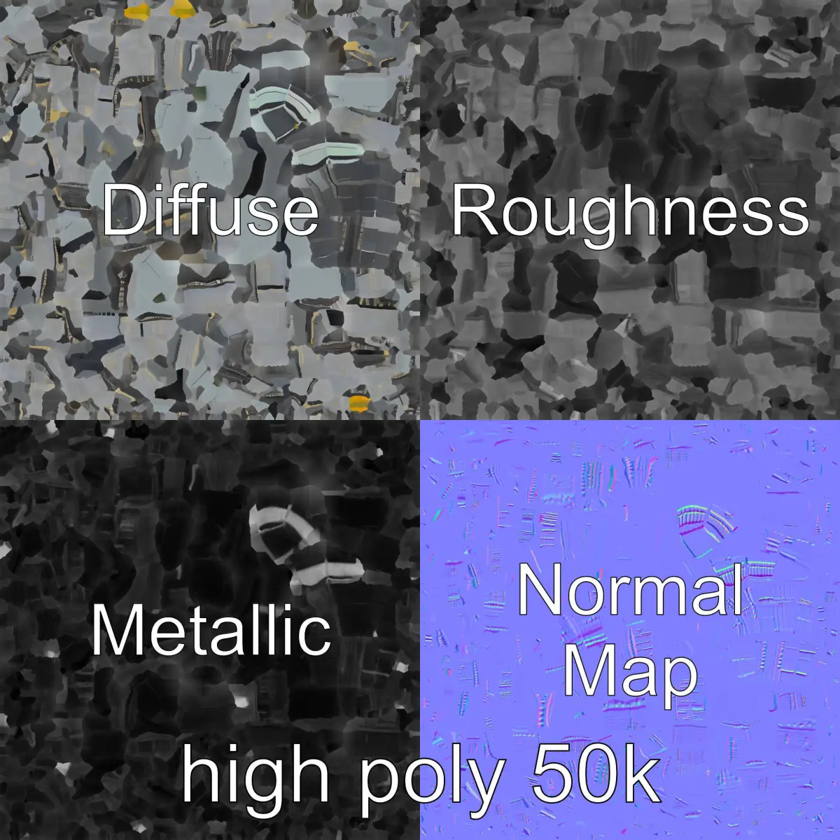 The model's textures are PBR, Diffuse, NormalMap, and reflection/roughness/metallic, suitable for any modern rendering engine. All models are accurately unwrapped and have no overlapping UV. All textures are 4096*4096 in size.