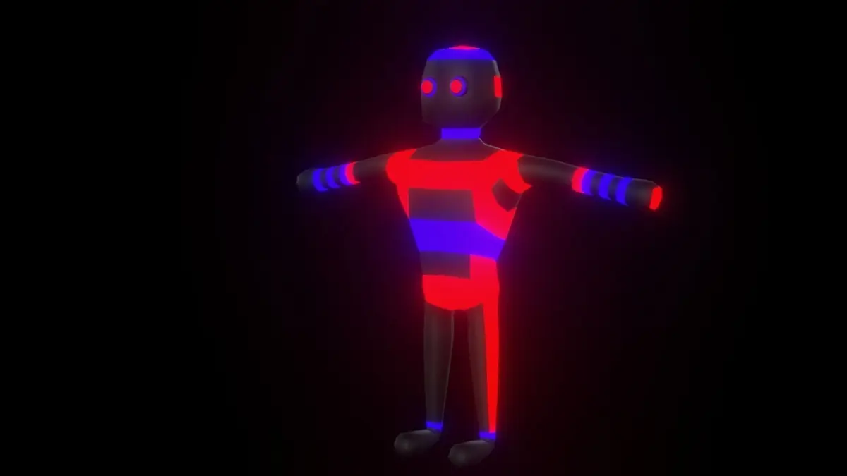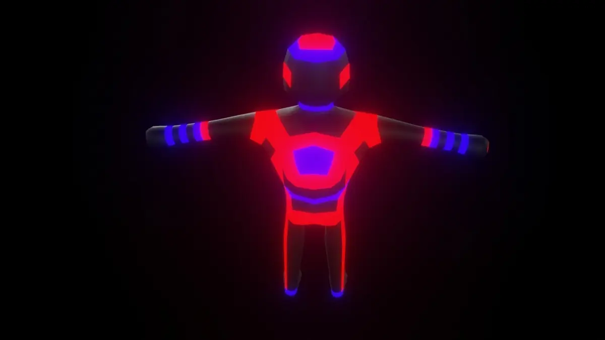 neon black, red and blue nft character made with blender.Neon Character lowpoly 3d model.Designed for sci fi and neon games, optimized for mobile devices.