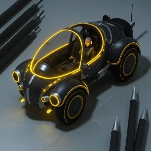 Step into the future with the Neon Runner, a highly detailed 3D model of a cyberpunk-style compact vehicle. Featuring a sleek, rounded design with neon yellow accents and a fully visible cockpit, this car blends retro aesthetics with high-tech vibes. Perfect for sci-fi enthusiasts, digital art scenes, animation projects, or 3D printing collectors looking for a unique centerpiece. The vehicle includes intricate design details like illuminated wheel arcs, futuristic propulsion systems, and a pilot modeled in a sleek cyber suit.