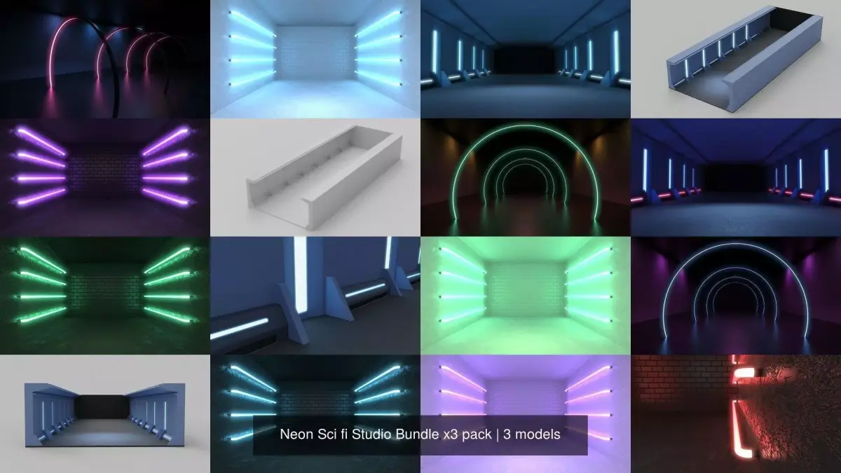 Include 3 Studio scene Neon sci fi studio