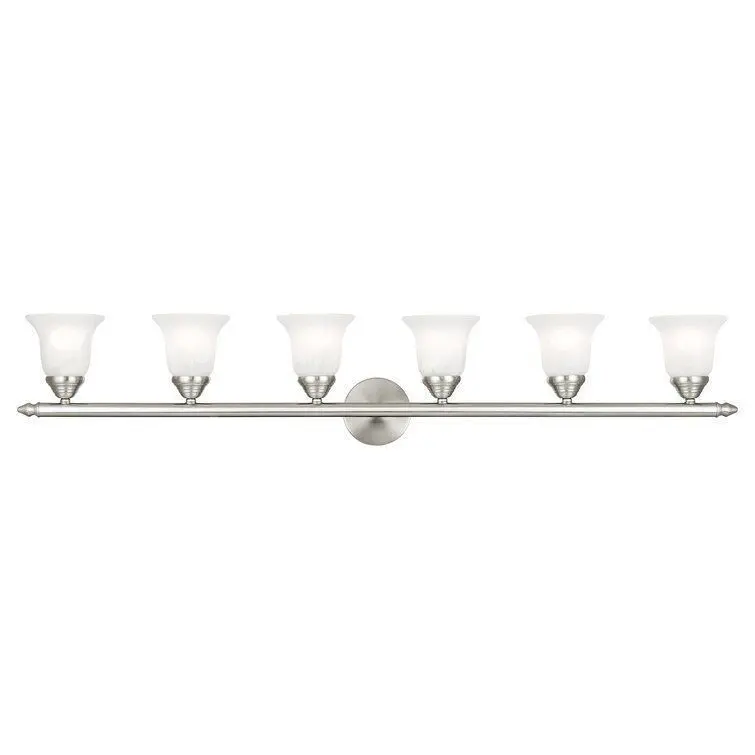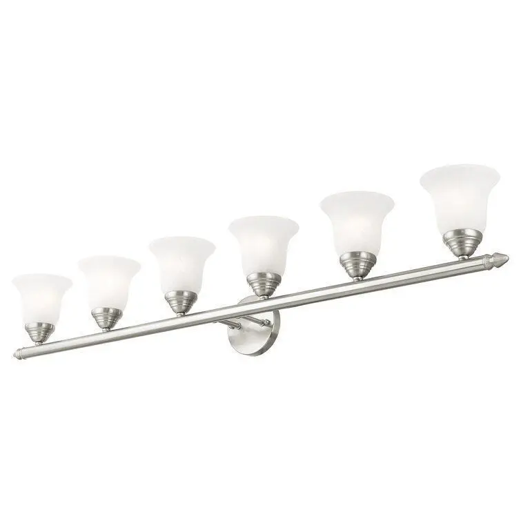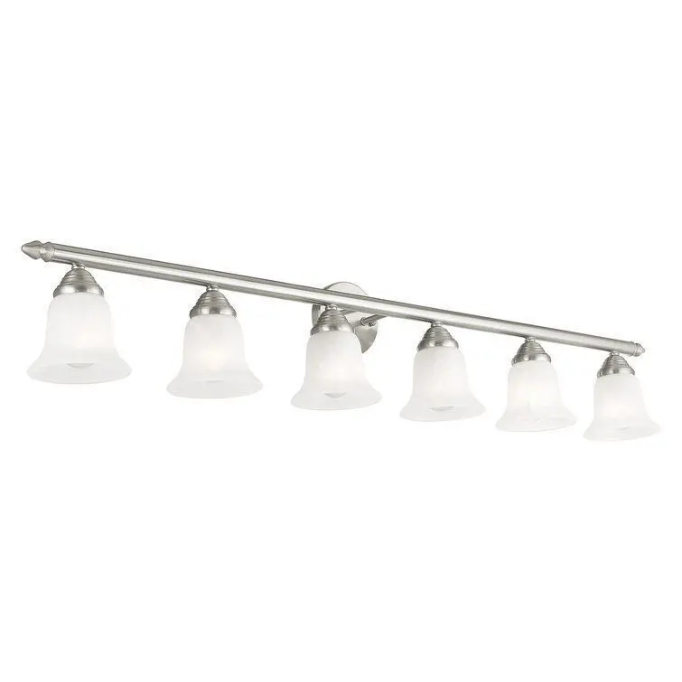- This clean and classic bath fixture design is ideal for bringing a bright new style to your bathroom space. It features white alabaster glass.