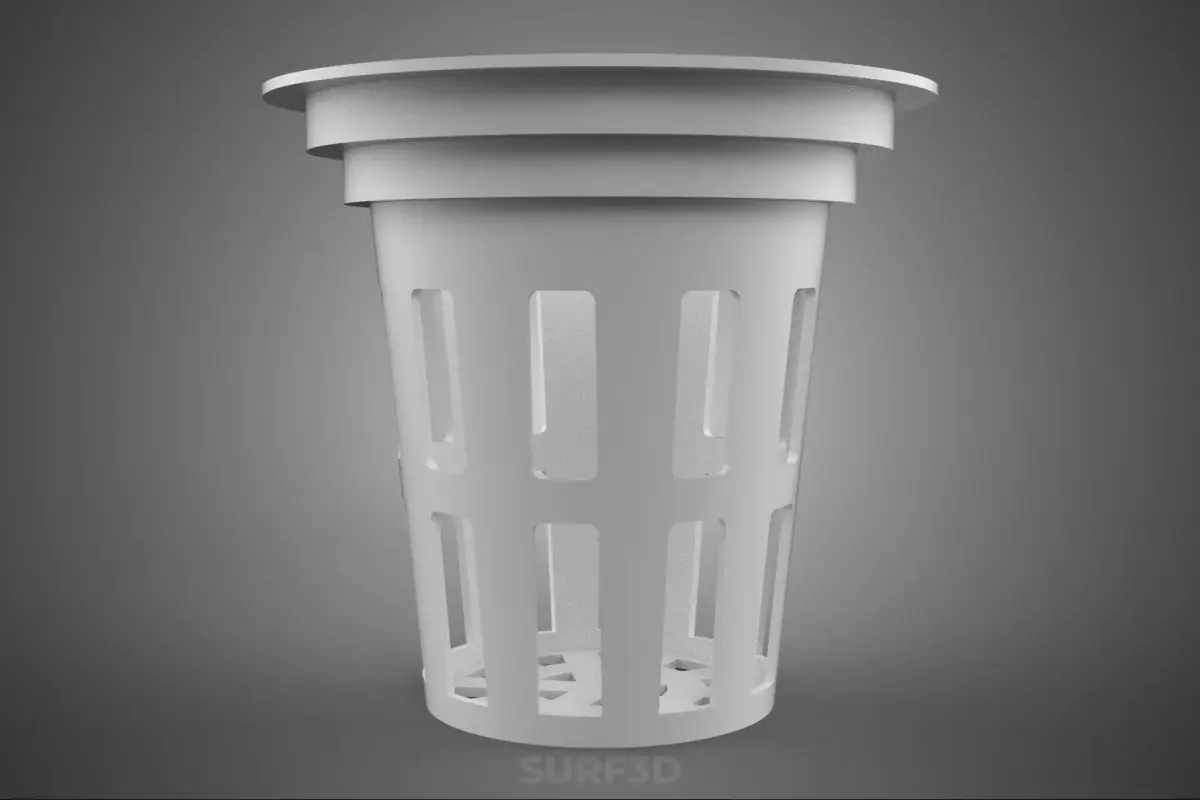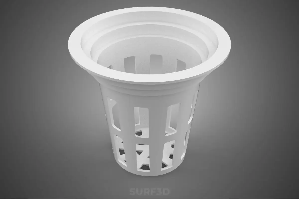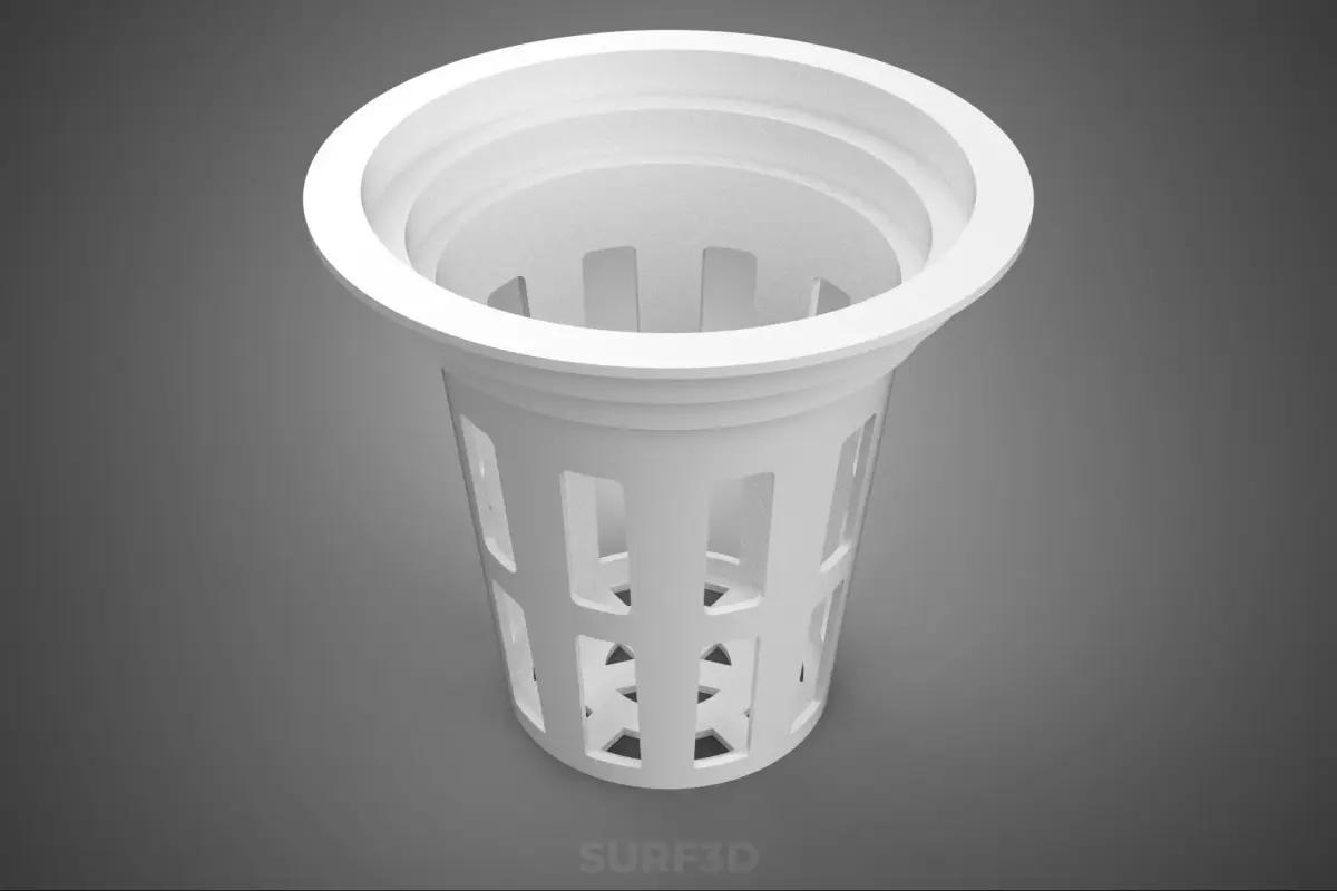 KEYWORDS: Hydroponics, Soilless culture, Net pot, Mesh basket, Root support, Deep water culture (DWC), Nutrient film technique (NFT), Ebb and flow, Aeroponics, Hydroton, Clay pebbles, Rockwool, Perlite, Polypropylene, HDPE, Horticultural equipment, Root development, Nutrient solution, Reservoir, Plant stabilization, Growing medium, Slotted cup, Air pruning, Drainage, Cloning, Seed starting, Hydroponic system, Growing container, Propagation, Aquaponics