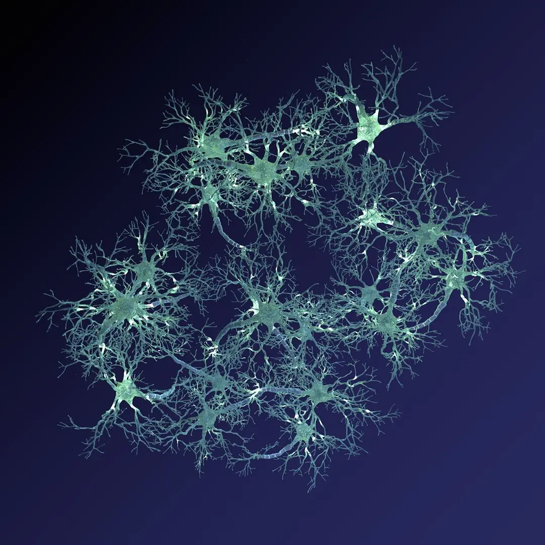 The scene consists of 21 Neuron group. Also, you can see particles to give a realistic environment. Each group of neuron include geometry: