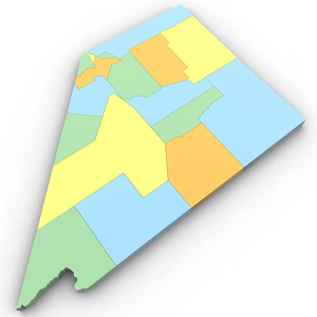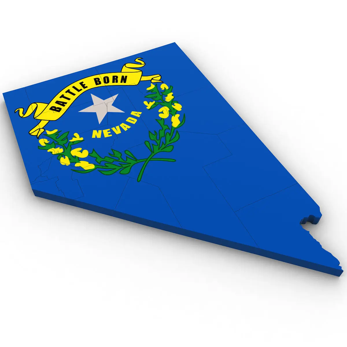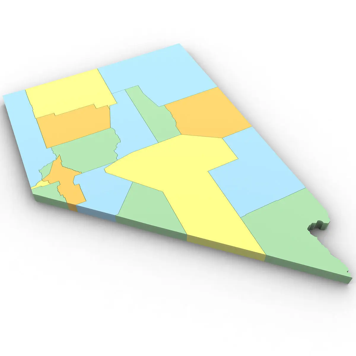 3d Model of the Political Map of Nevada. Features every county in the state. The modifier stack is uncollapsed allowing for easy change of extrusion settings.