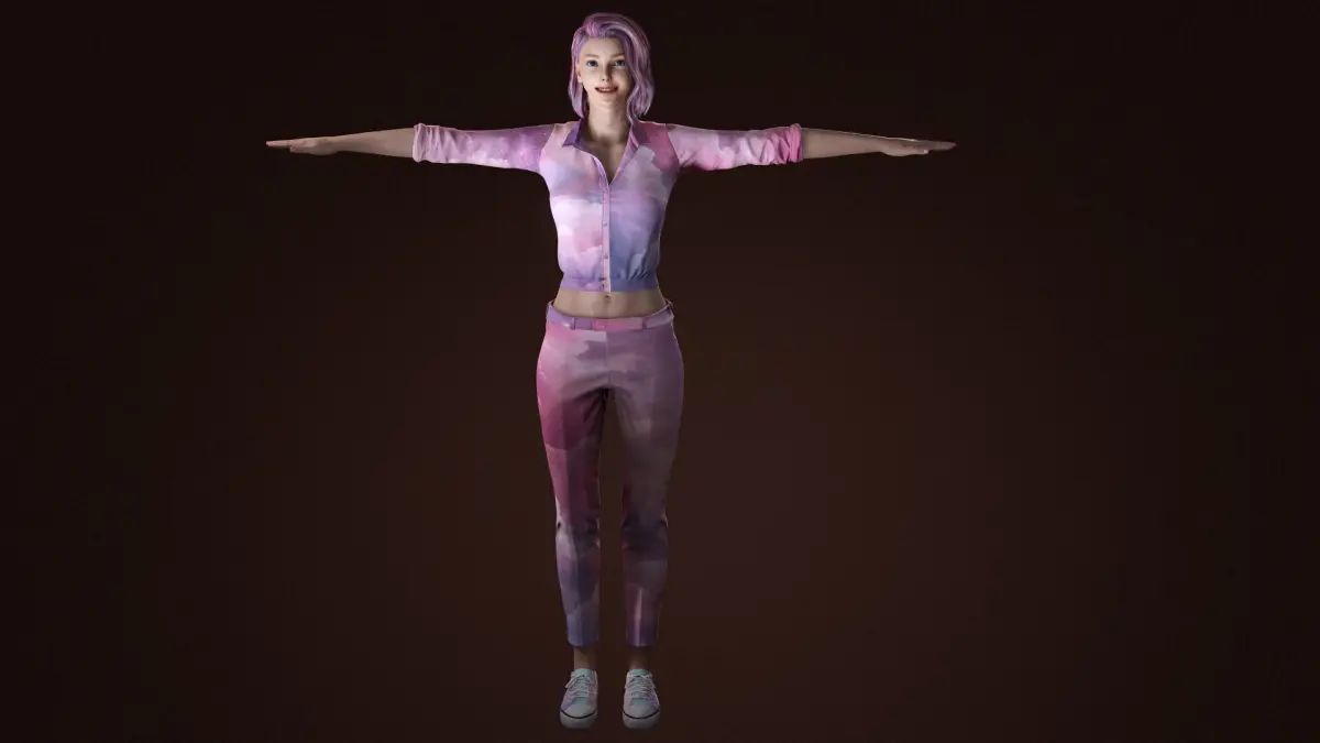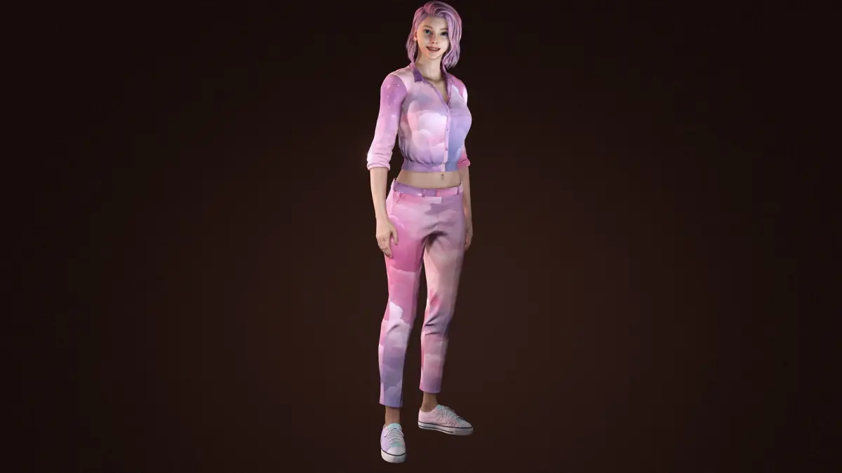 Introducing a highly detailed and realistic 3D female character with a unique cloud-patterned outfit and stylish pink hair. Designed for games, animations, and 3D projects, this model is optimized for high-quality rendering. The character features a fully textured outfit, realistic skin shaders, and a professional rig for easy animation. Ideal for CGI, cinematics, or VR/AR experiences.