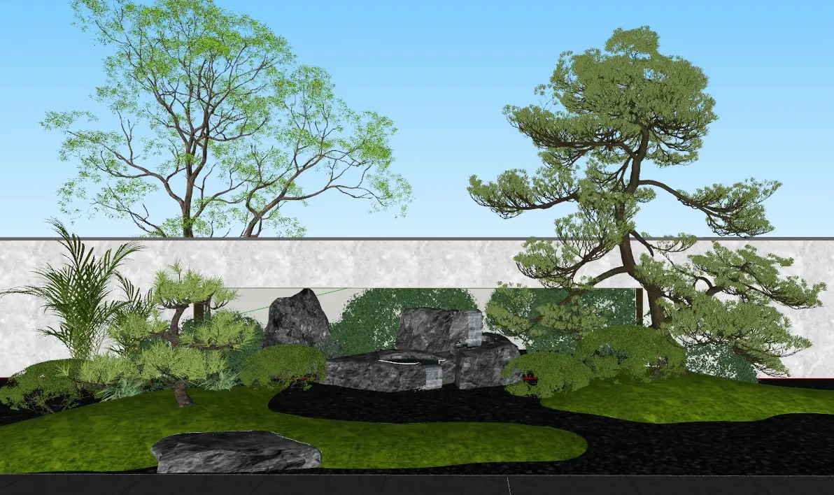 Product/Service Introduction:Integrating the New Chinese - style design concept, with vigorous pine trees and natural rocks as the framework, matched with scattered green plants and simple white walls, creating an implicit and elegant Oriental artistic conception. From space layout to detail carving, a courtyard with both modern sense and traditional charm is built, suitable for high - end residences, clubs, and cultural tourism projects, conveying Chinese aesthetics.Applicable Scenarios:High - end residence courtyard creation, private club landscape design, cultural tourism project garden matching, art hotel courtyard arrangement, Zen teahouse outdoor space