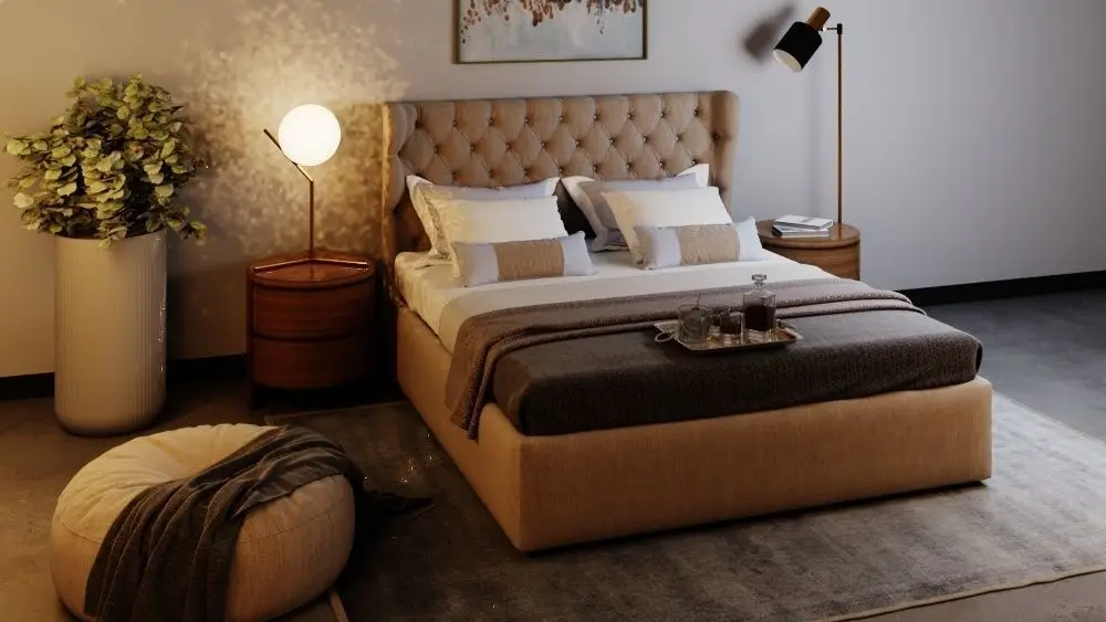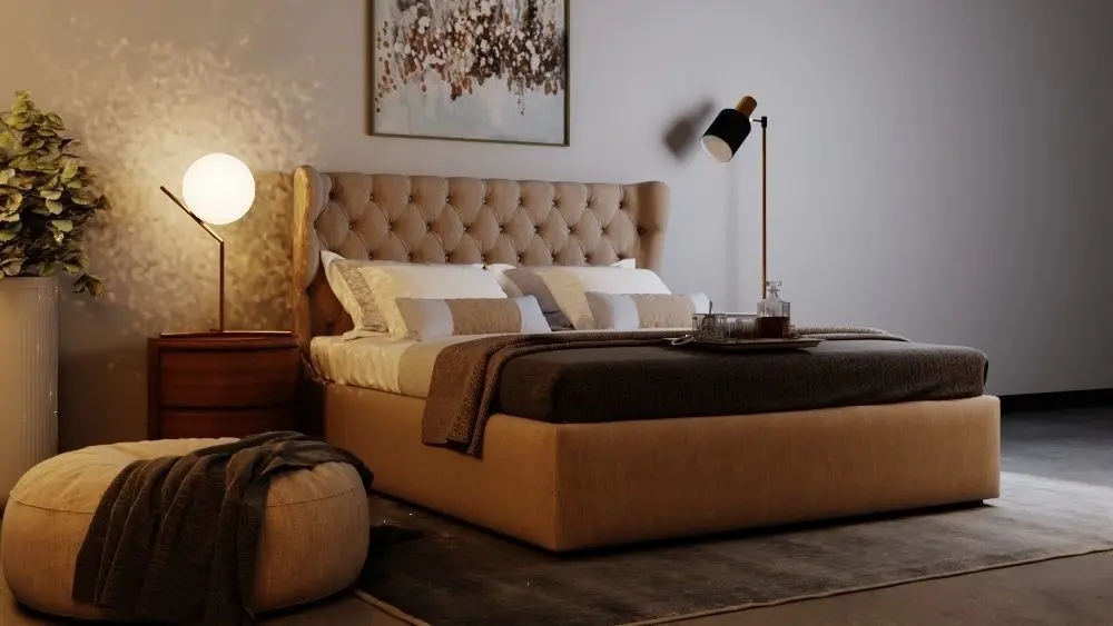 Luxury New Classic Bed With Accessories Floor Lamp Cabinate Frame Planrs Rug And Couch All Made Of Durable Fabrics Highly Detailed For Close Up Renders Now Avilable For CG Artistes Interior Designers And Architects This Includes 3ds Max Vray Model FBX 3DS And Obj Files