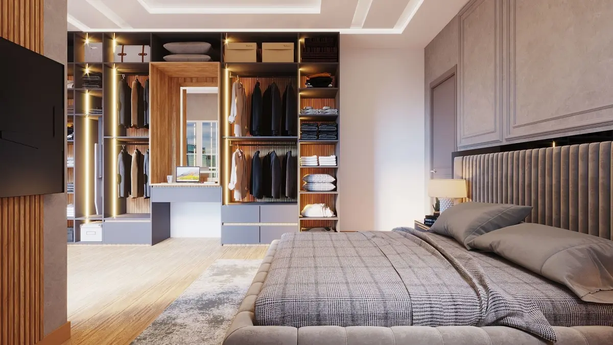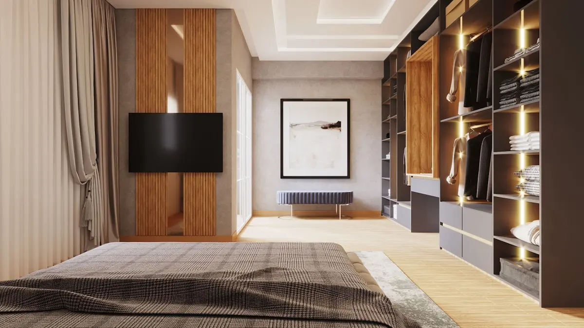 Modern master bedroom , with very simple design , clean and elegence , 3ds max file clean materials and modeling , all editpoly , i used in this scene pro models not free all materials are Corona materials, its all pro furniture the file is ready to drop in any scene or any design you want just pick models from it and materials and use it in your design easily also you can use the scene light to improve your light system in render and get more reality vray materials this is a scpace for masteer bedroom with tv unit and small sitting sofa with moadrn touch also used 3ds max 2019 in modeling and vray next 4.1