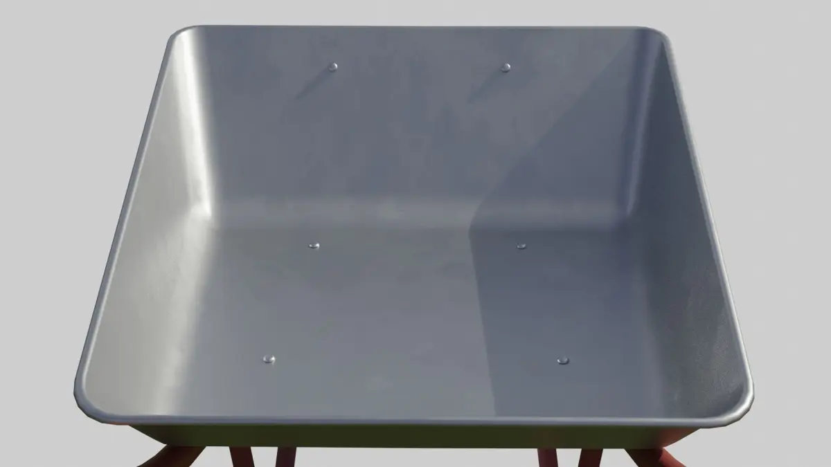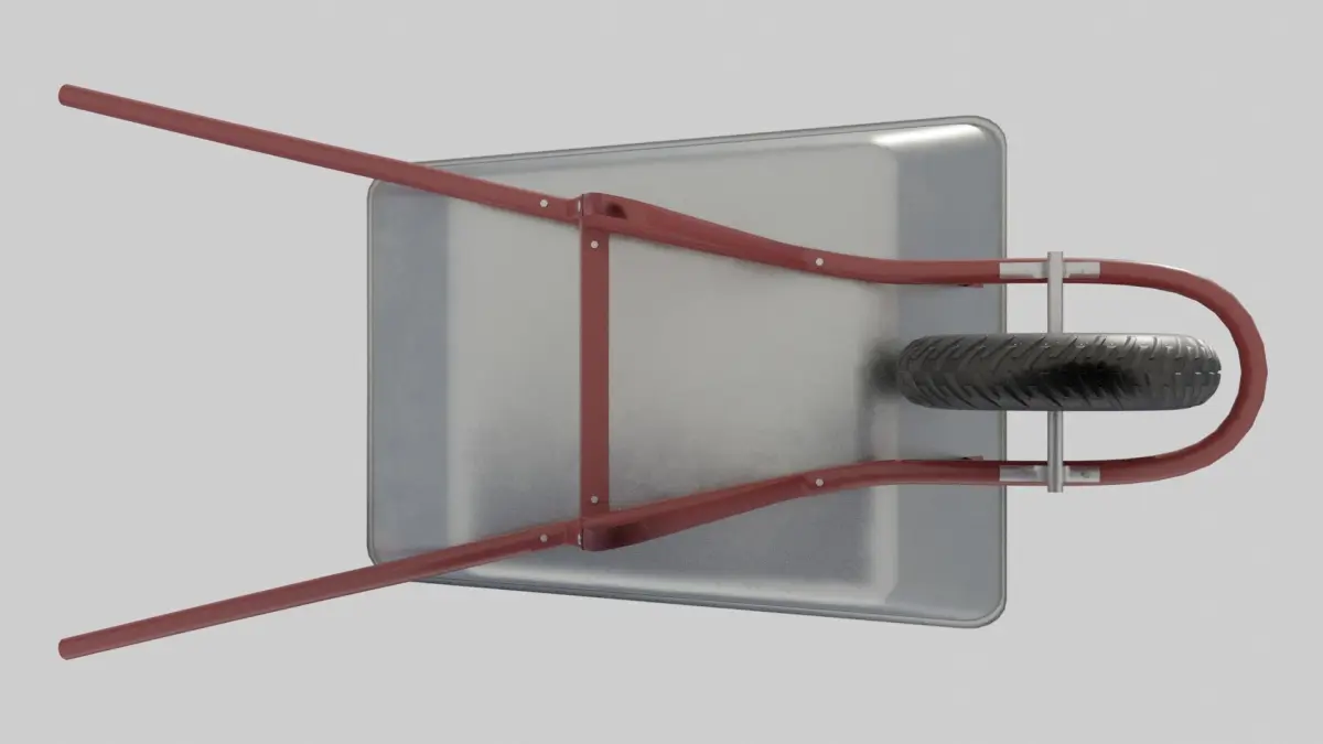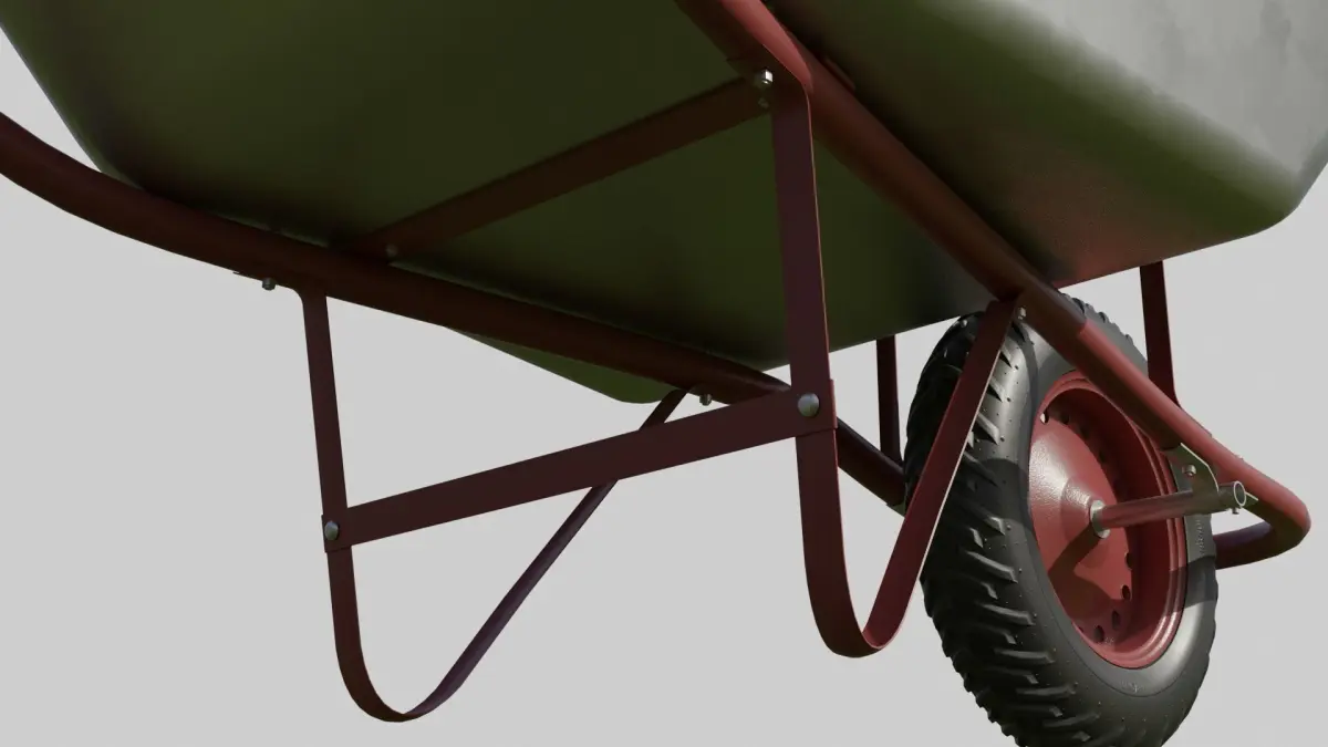This clean wheelbarrow was carefully modeled with the intention of being a clean brand new piece of equipment that just came out of the factory.