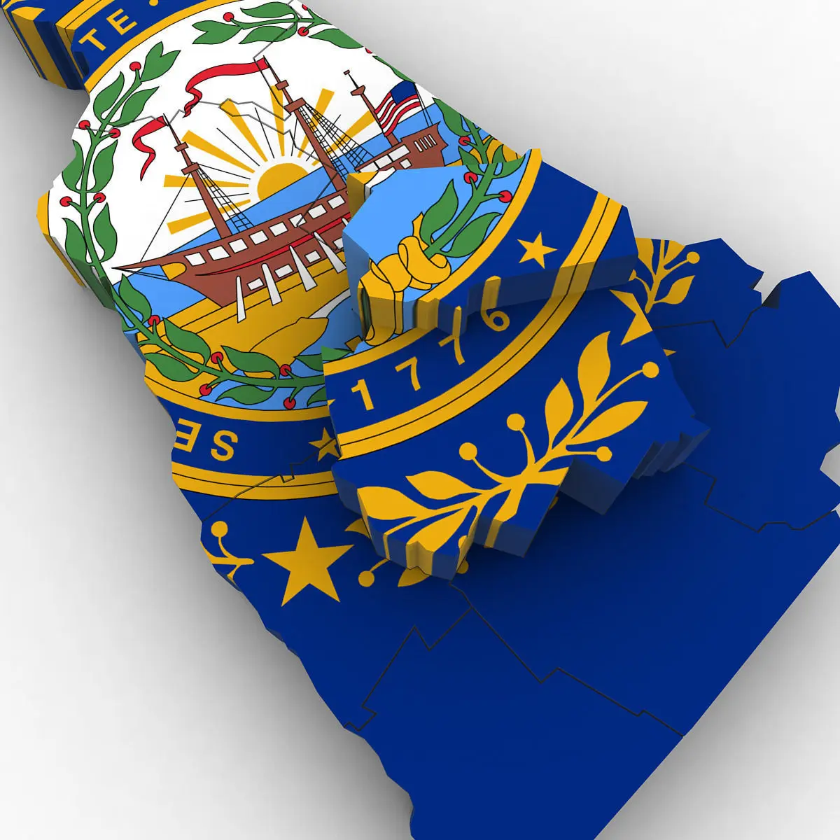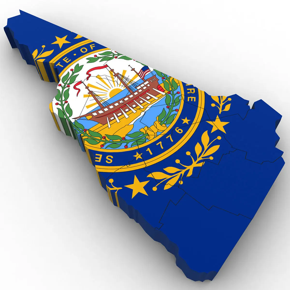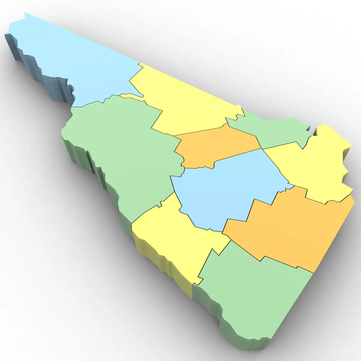 3d Model of the Political Map of New Hampshire. Features every county in the state. The modifier stack is uncollapsed allowing for easy change of extrusion settings.