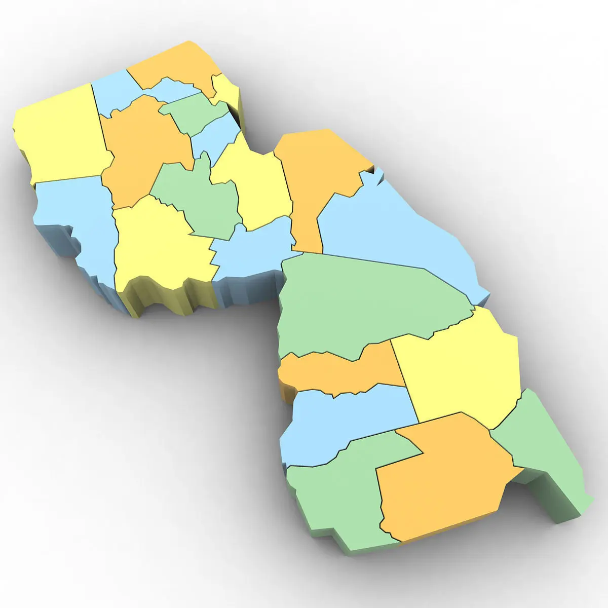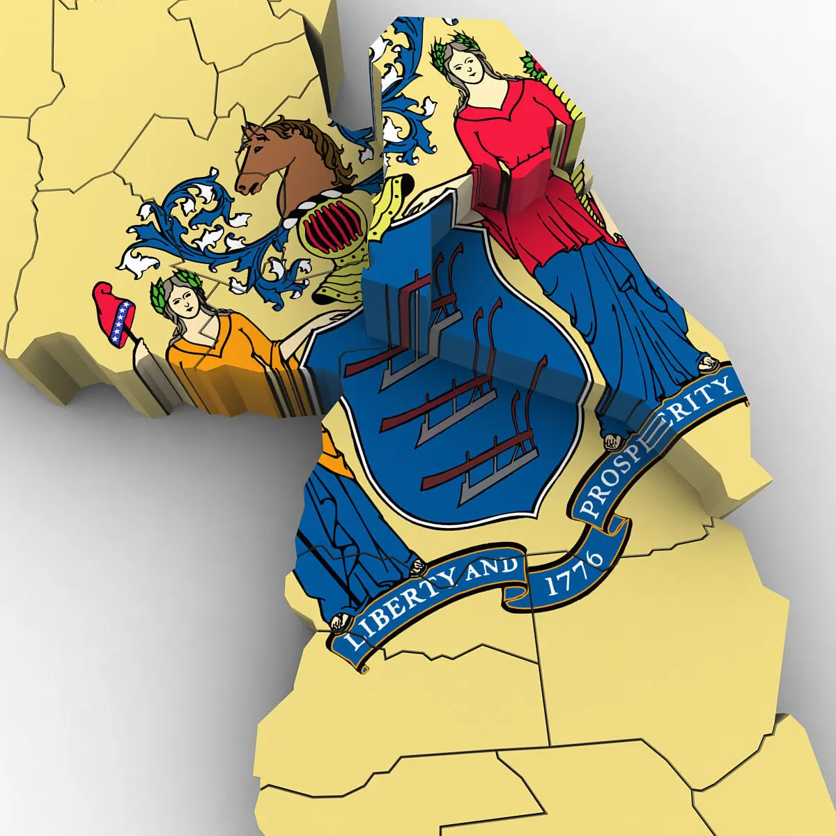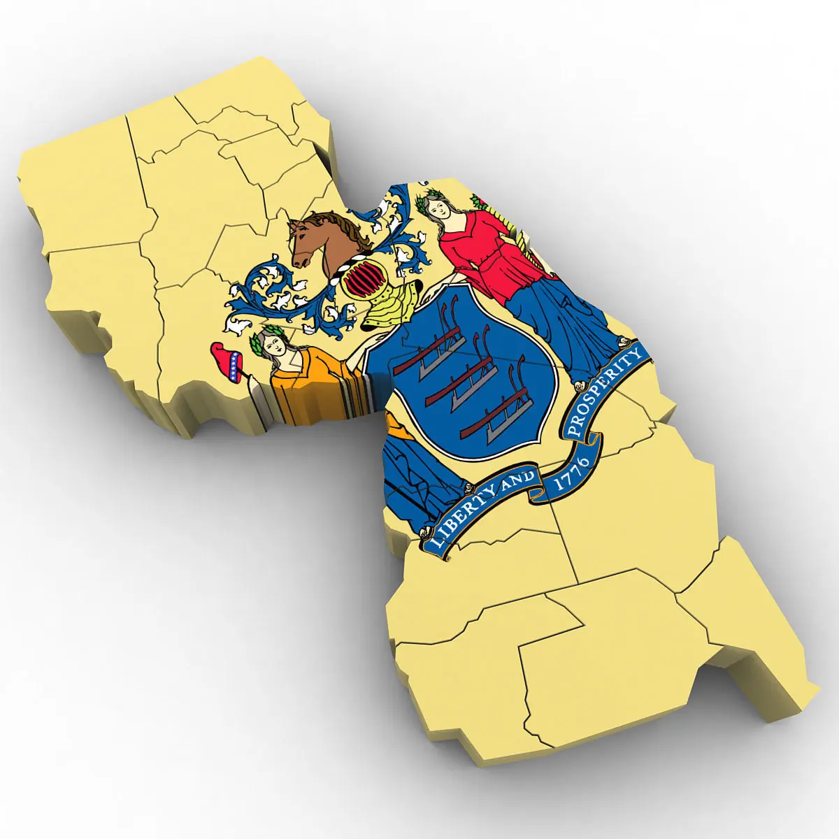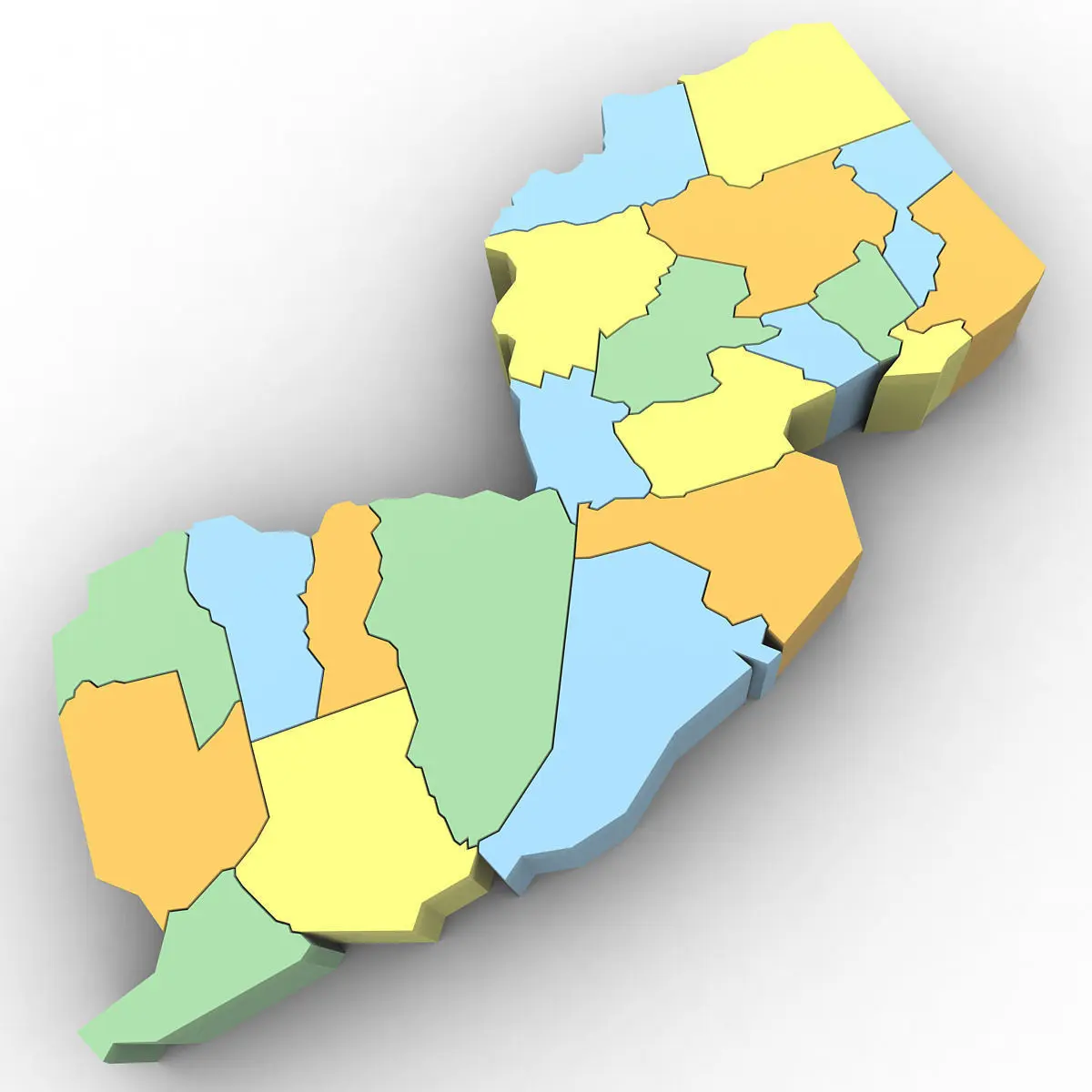 3d Model of the Political Map of New Jersey. Features every county in the state. The modifier stack is uncollapsed allowing for easy change of extrusion settings.