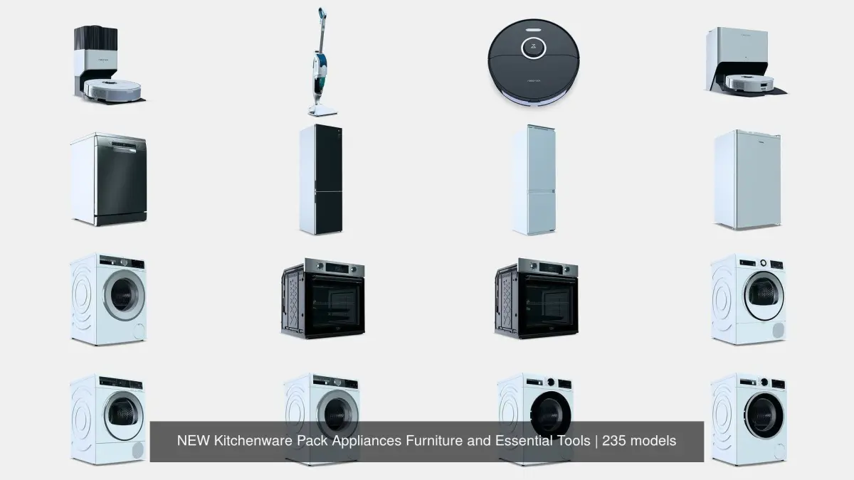 Extensive range of kitchen appliances like refrigerators, ovens, dishwashers, and coffee makers.Perfect for creating realistic kitchen interior or kitchen design projects.Optimized 3D models for smooth performance in any rendering or simulation environment.Ideal for use in games, VR/AR, architectural visualization, or product showcases.