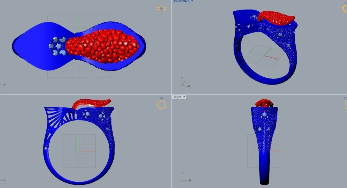 new model gold ring with stones 3D print model