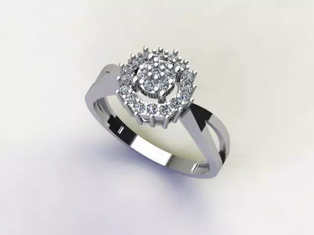 The model is designed with accurate proportions and clean geometry, making it ideal for 3D printing, rendering, or jewelry manufacturing. Its modern band design and sparkling halo arrangement make it suitable for engagement rings, fashion jewelry, or custom gold designs.