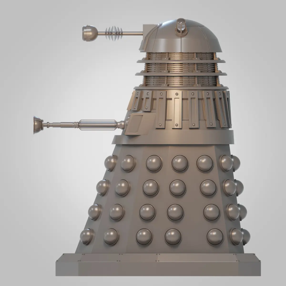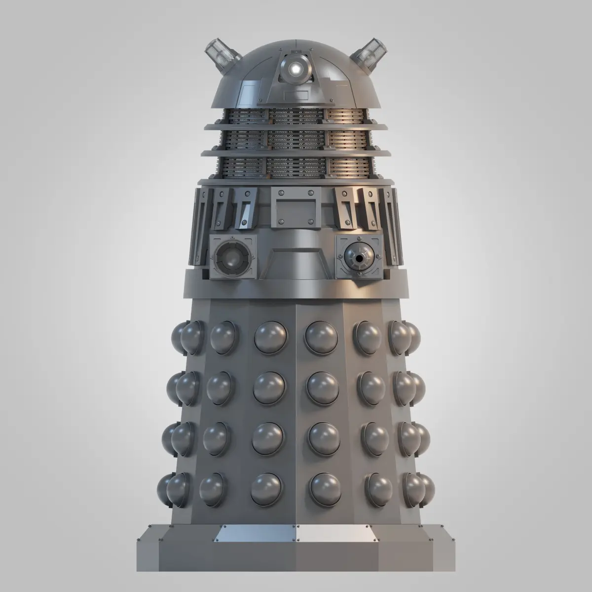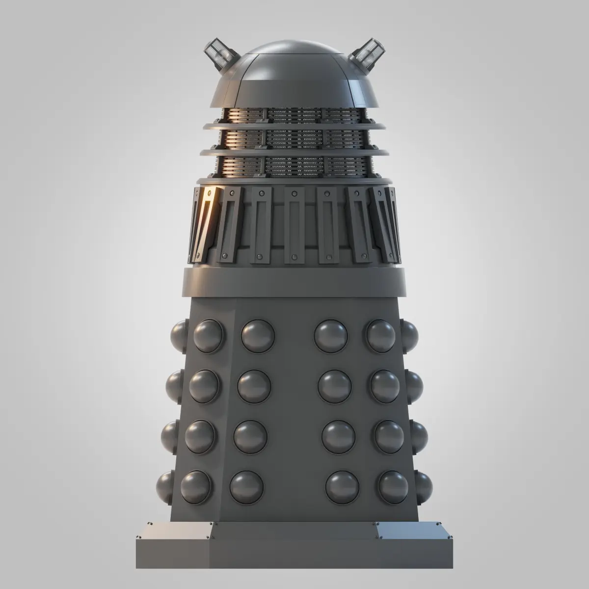 3D Model of a New Series Dalek. It is untextured, but materials separate clear parts from everything else. Credit to projectdalek.com for the plans, to make sure this is completely to scale. Ngons are used, but normals and bevelled edges mean that this doesn't effect the shading. While this is not rigged, each part of the Dalek is a separate object, and the origins are set to the pivot points.