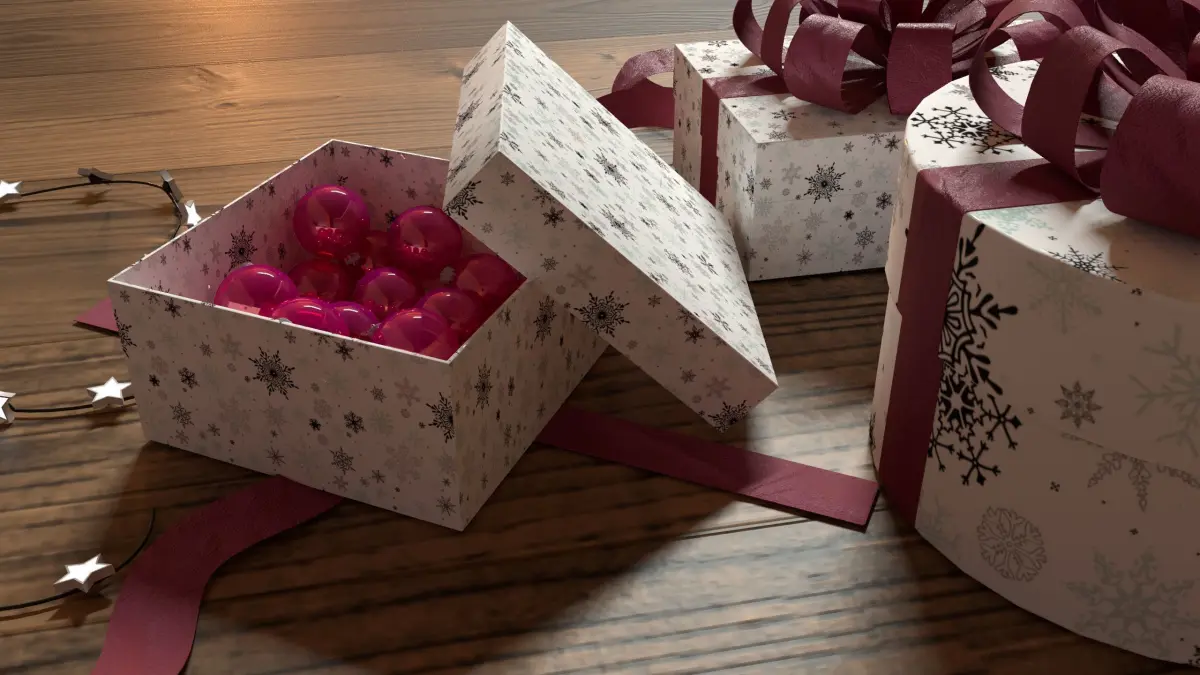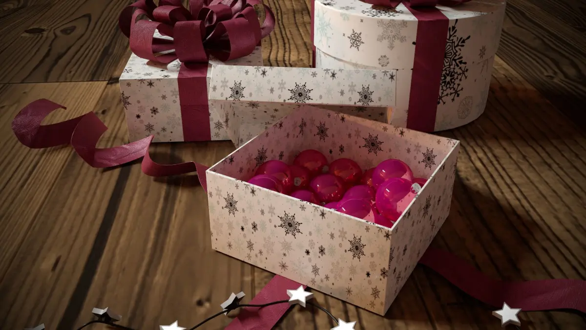 Three boxes with ribbons and bows - a round box, a square one and a rectangular one. There are balls in an opened box and a garland. Textures are 4096*4096 px, so the model can be used for interior render. The file is made in Cinema 4D with Corona materials for Corona render. There is also .obj and .fbx files.