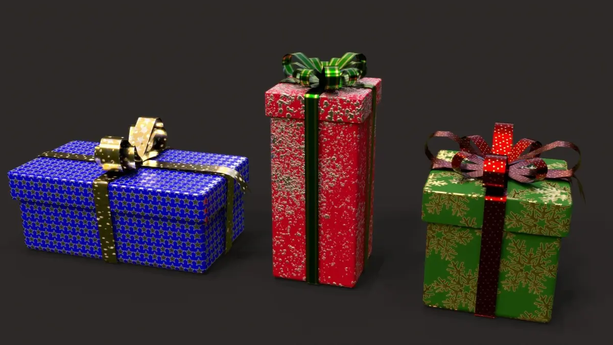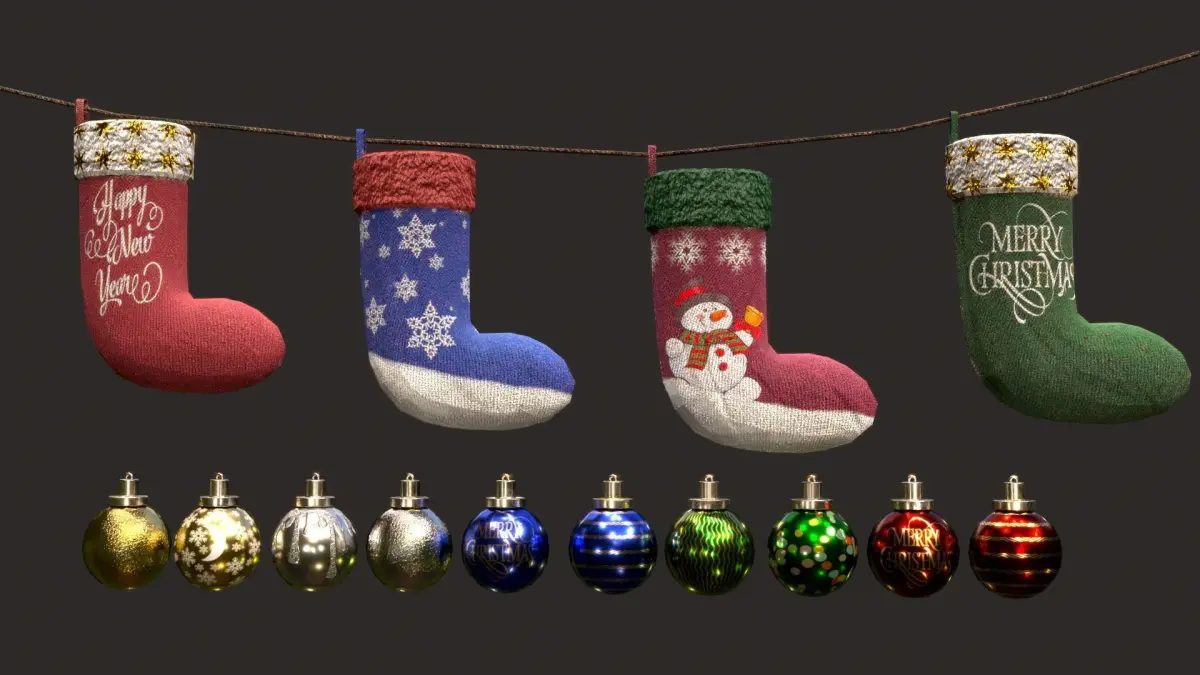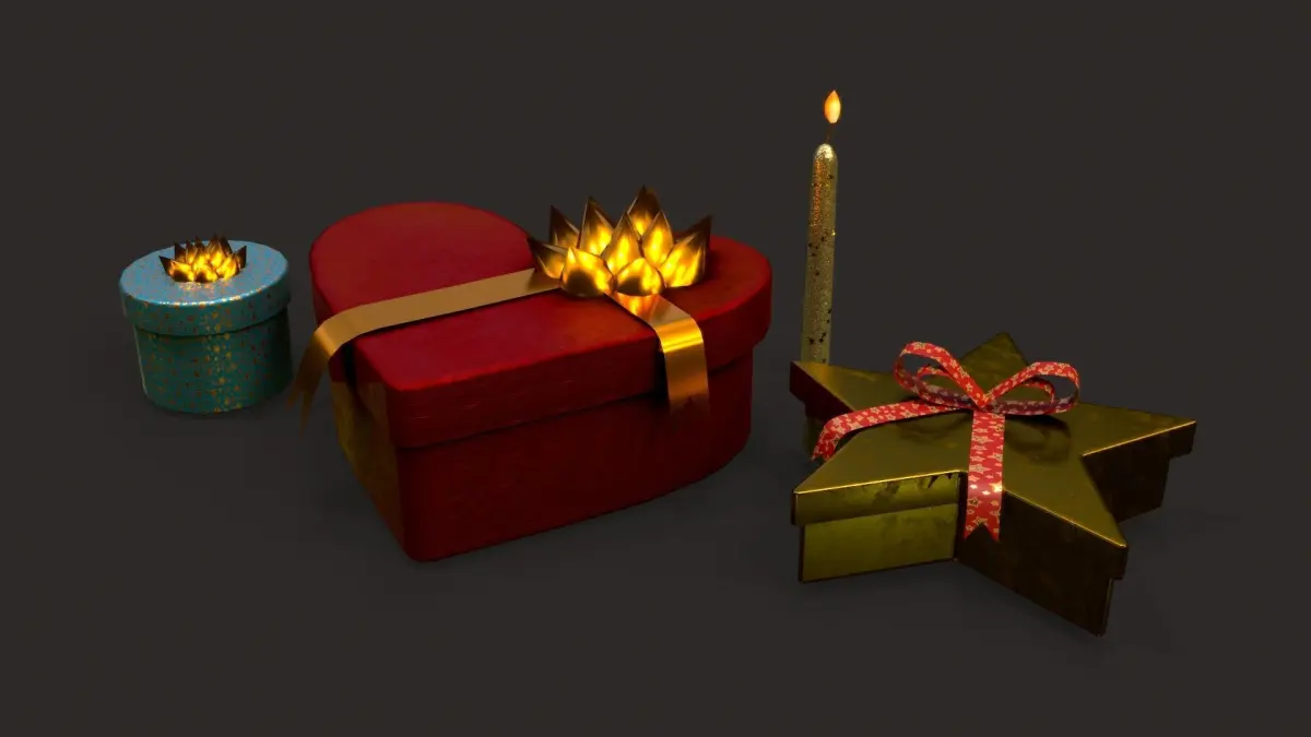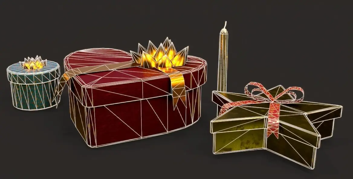 Low-poly New Year pack of gifts and decorate for integration into your own 3d holiday scenes.