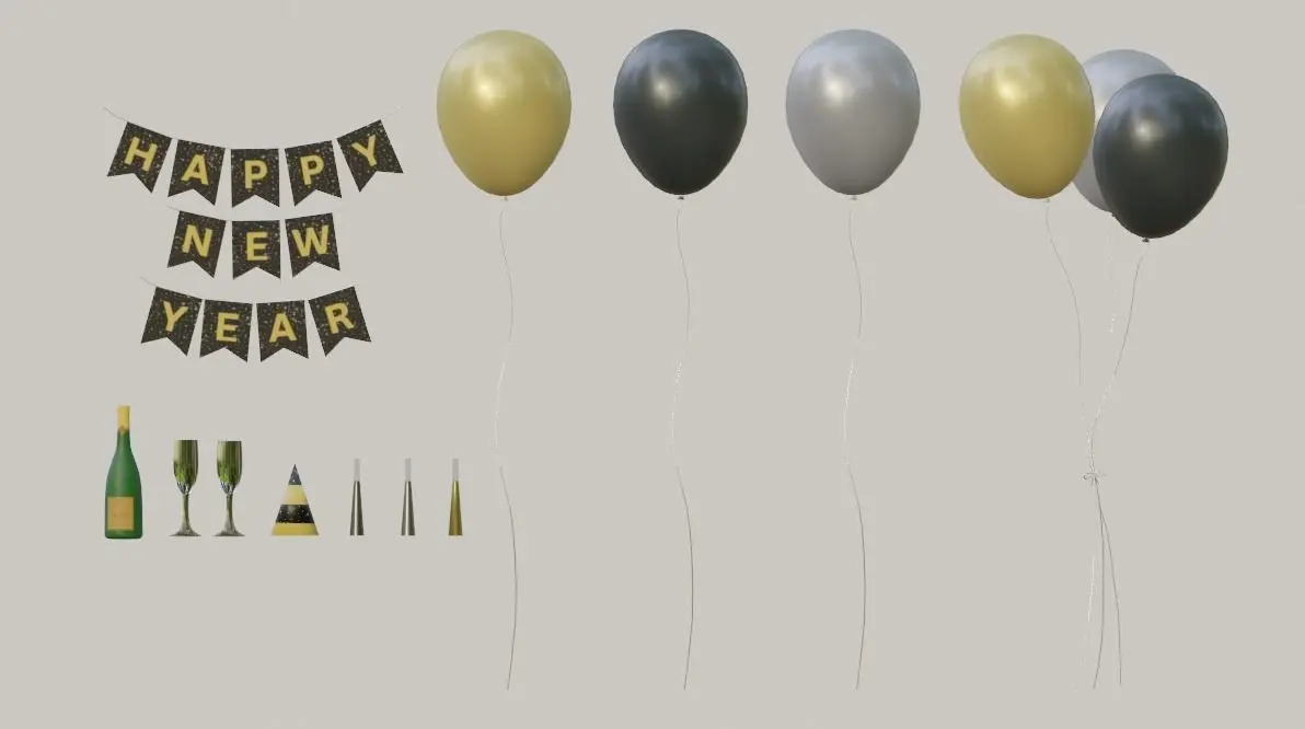 Want to decorate for a New Years Bash? This is the pack to do it with! Complete with balloons, banners, and party supplies, you'll be set for a party scene. (Table and background not technically included, but you can use them if you wish)