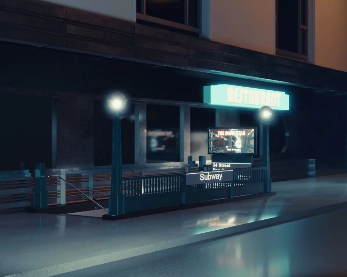 This scene is inspired by the real 8 Ave (Penn Station) - 34th street Subway station.This is a good foundation if you want to build a bigger and more complex New York scene.Note: Dimensions of the metro are not accurate (the real metro station is shorter), but other than that the scene it's pretty close to reality. and gives you the true Manhattan feeling. Names are fictional. The road is really long to make perspective renderings easier.Some parts overlap, not ready for 3D Print. Good model for architectural renderings.