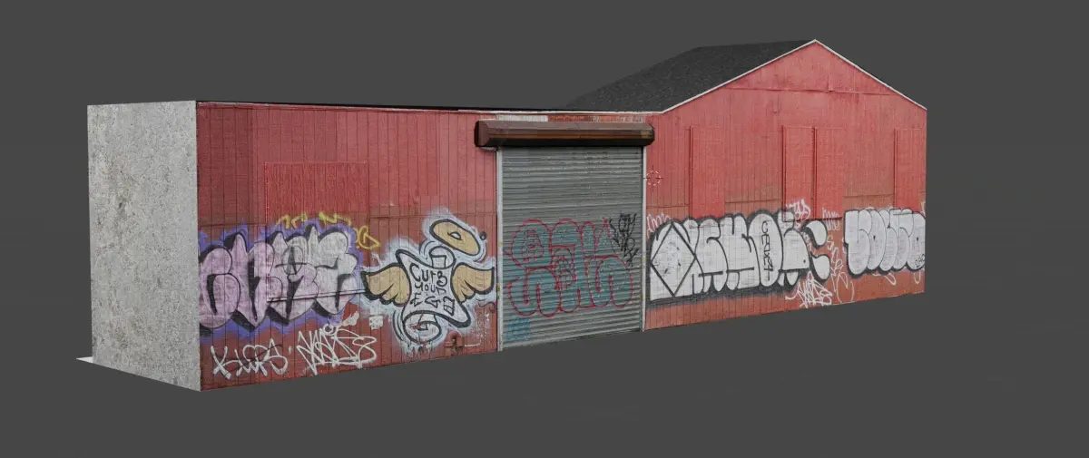 This low poly model is based off of a real photograph og a building in Brooklyn. The building has graffiti and closed windows. It is a warehouyse/commercial space, and can be used as a background asset or as a building facade in your street scene. The building is meant to be placed next to others, and currently only has the face/facade modeled.