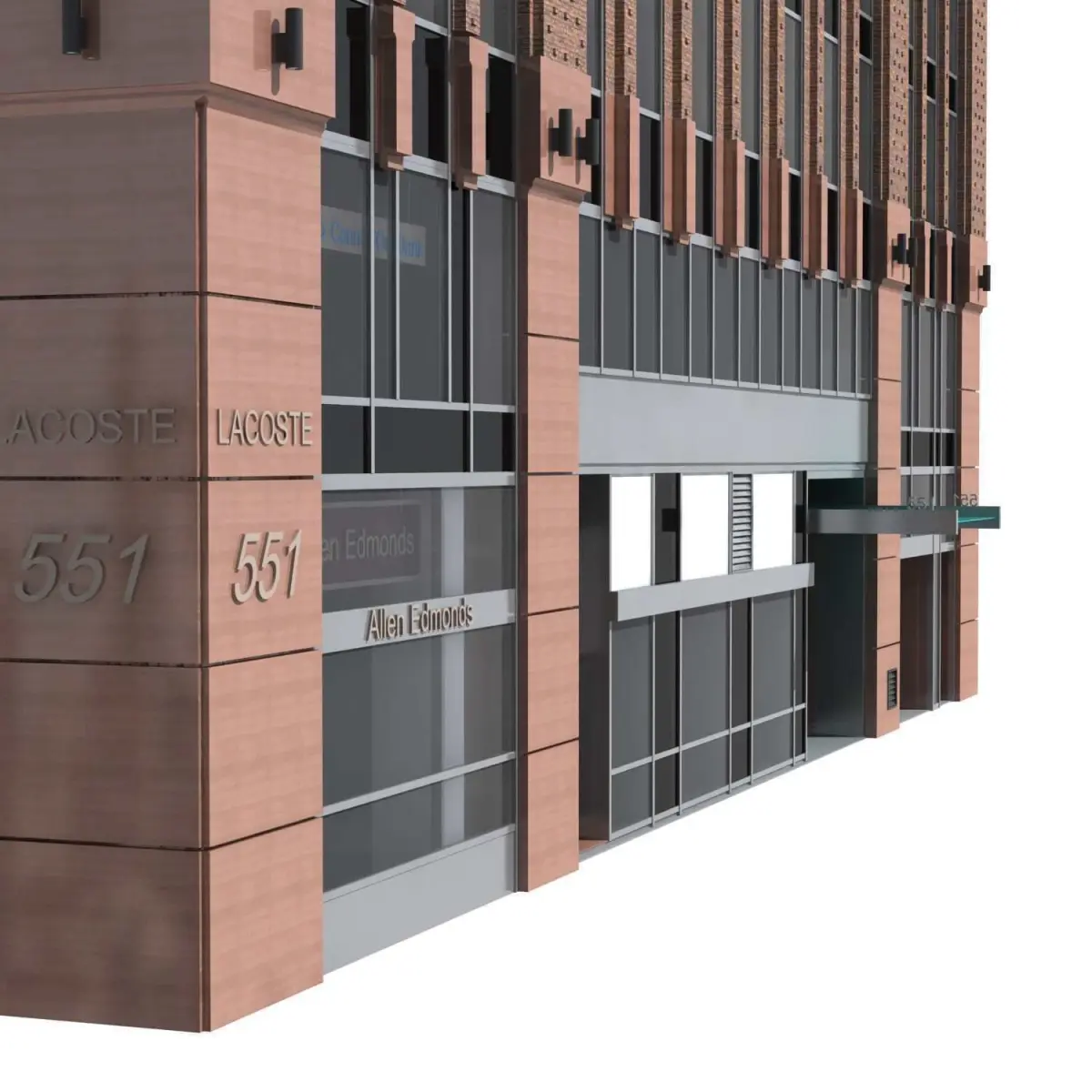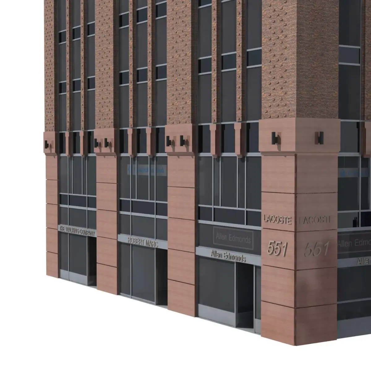 old historic building 3d model. situated at New York.facad decorated red bricksfirst floor retail and shops and bank