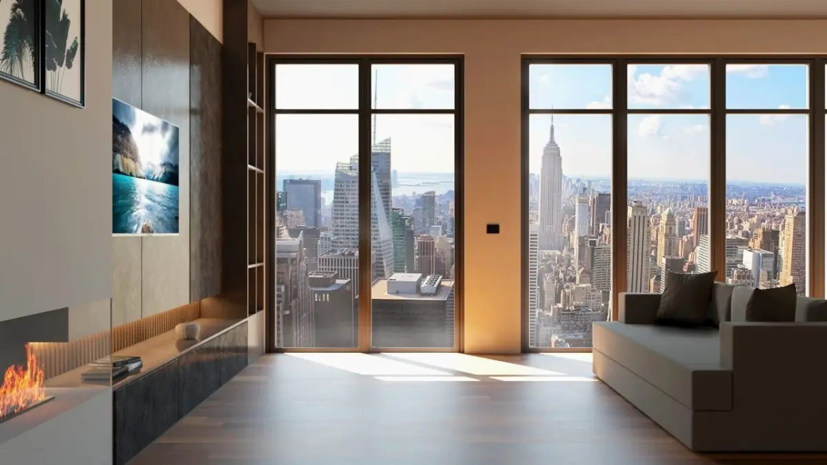 A 3D model of a living room designed by me , with New York view . ( the background of the city is made with photoshop )Texture are all included .