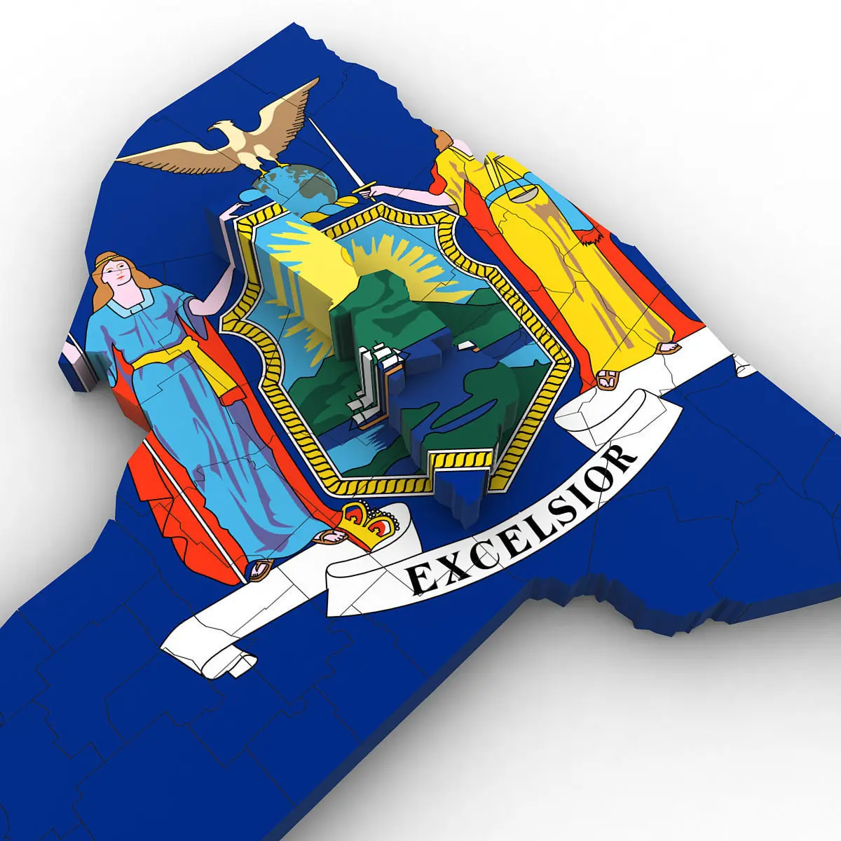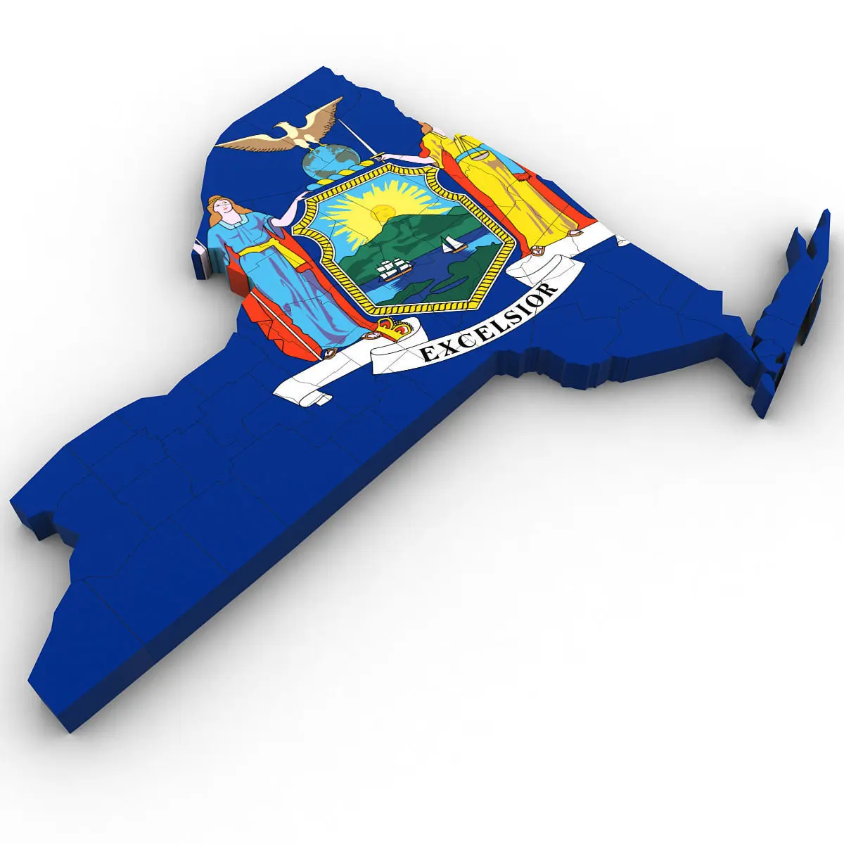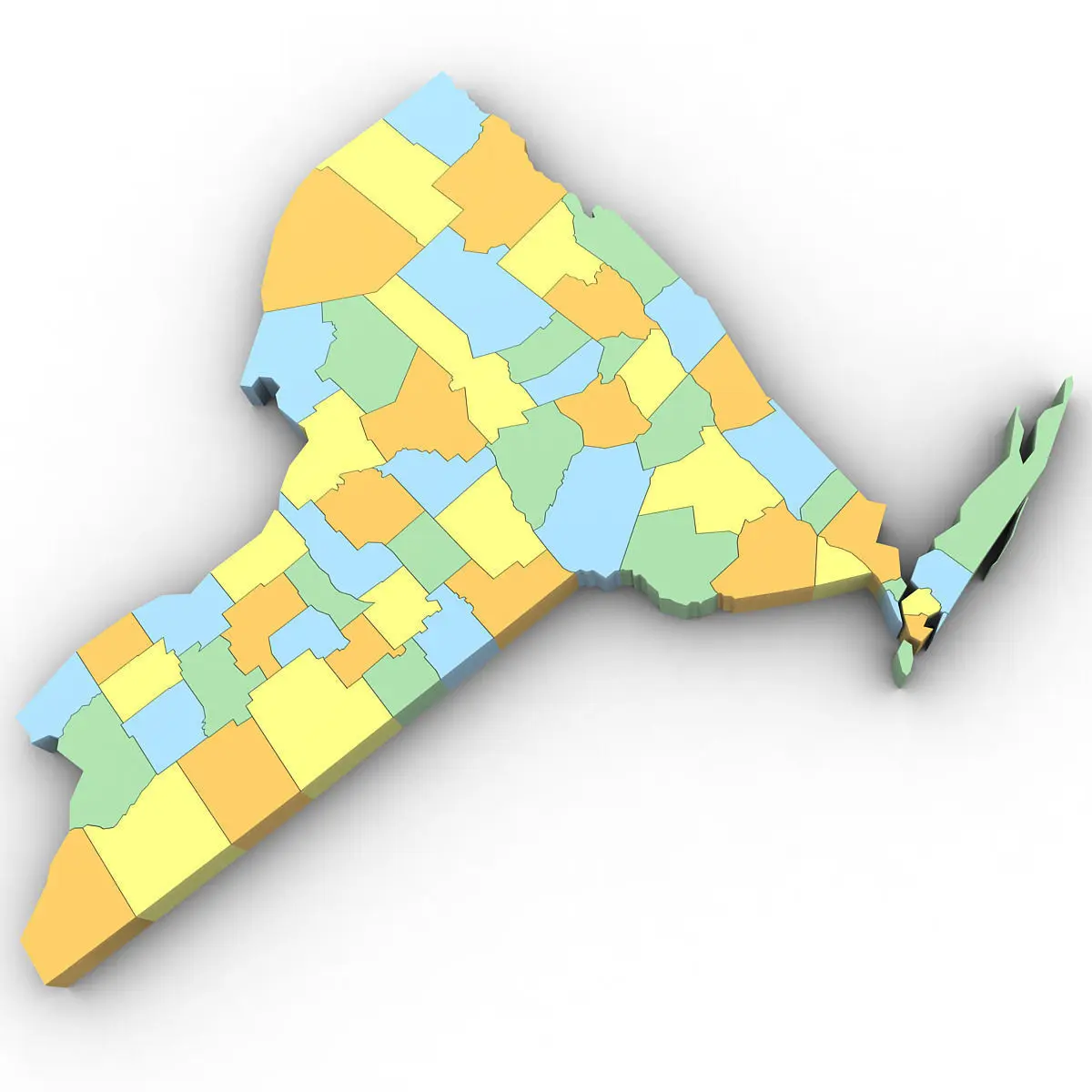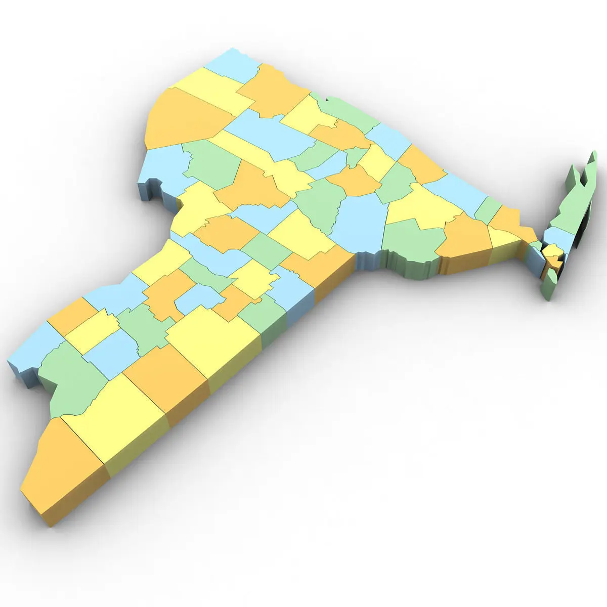 3d Model of the Political Map of New York. Features every county in the state. The modifier stack is uncollapsed allowing for easy change of extrusion settings.