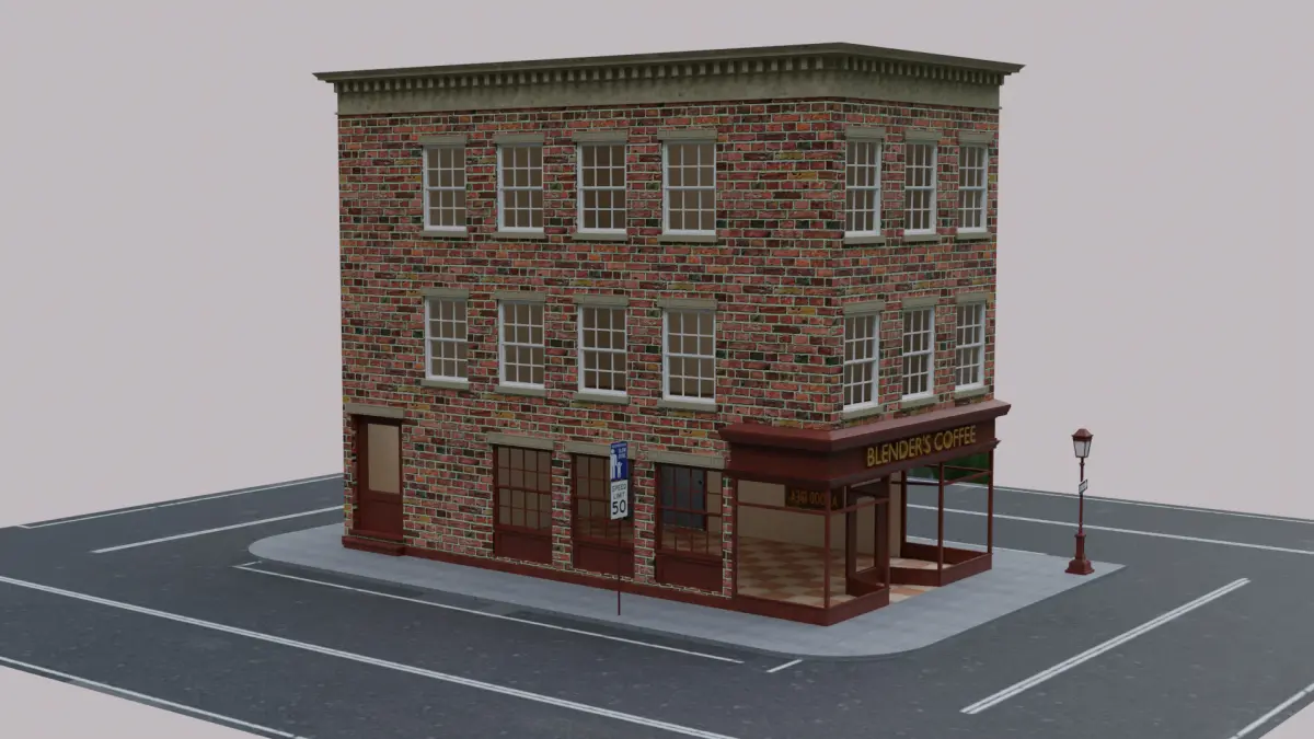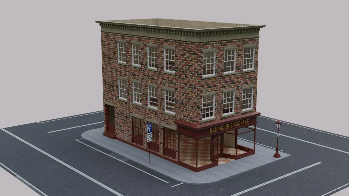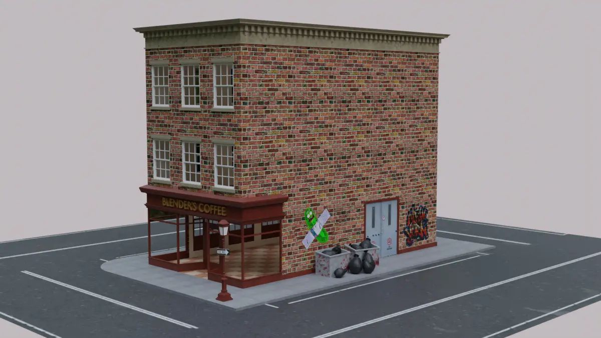 Design Highlights:A small coffee shop named Blender's Coffee with an inviting exterior.Realistic brick walls, street lamps, trash bins, and graffiti details for an authentic urban feel.Includes a basic street environment with sidewalks and roads for easy scene integration.Game-ready and lightweight—ideal for performance-efficient rendering.Perfect for cityscape scenes, background assets, and urban storytelling projects!