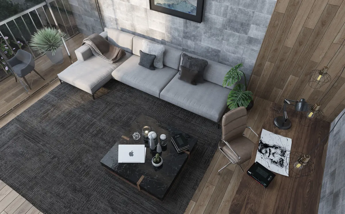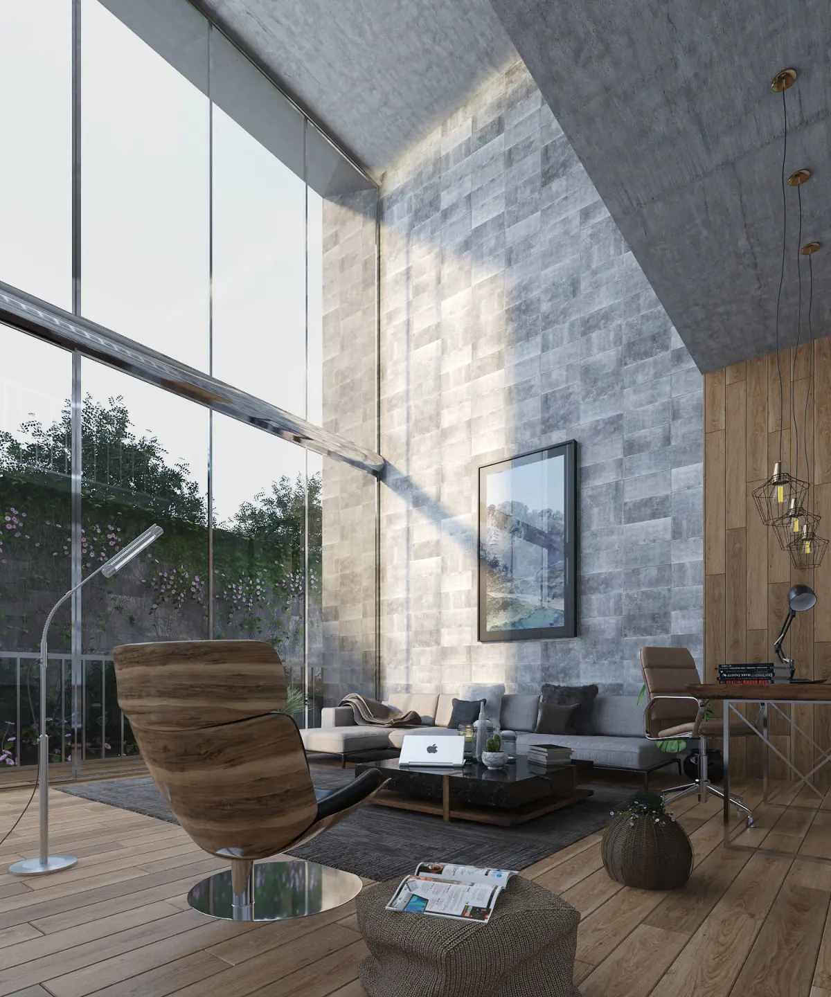 New York Style Livingroom, design influenced by one of edition office projects. Modelled by Visuarch.