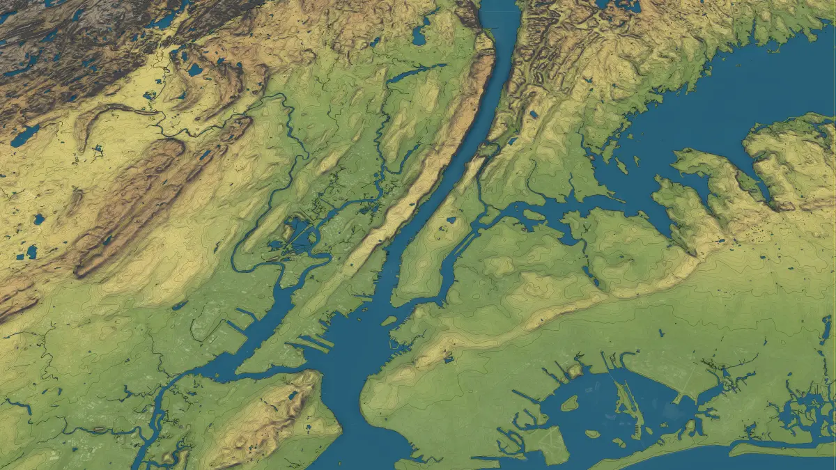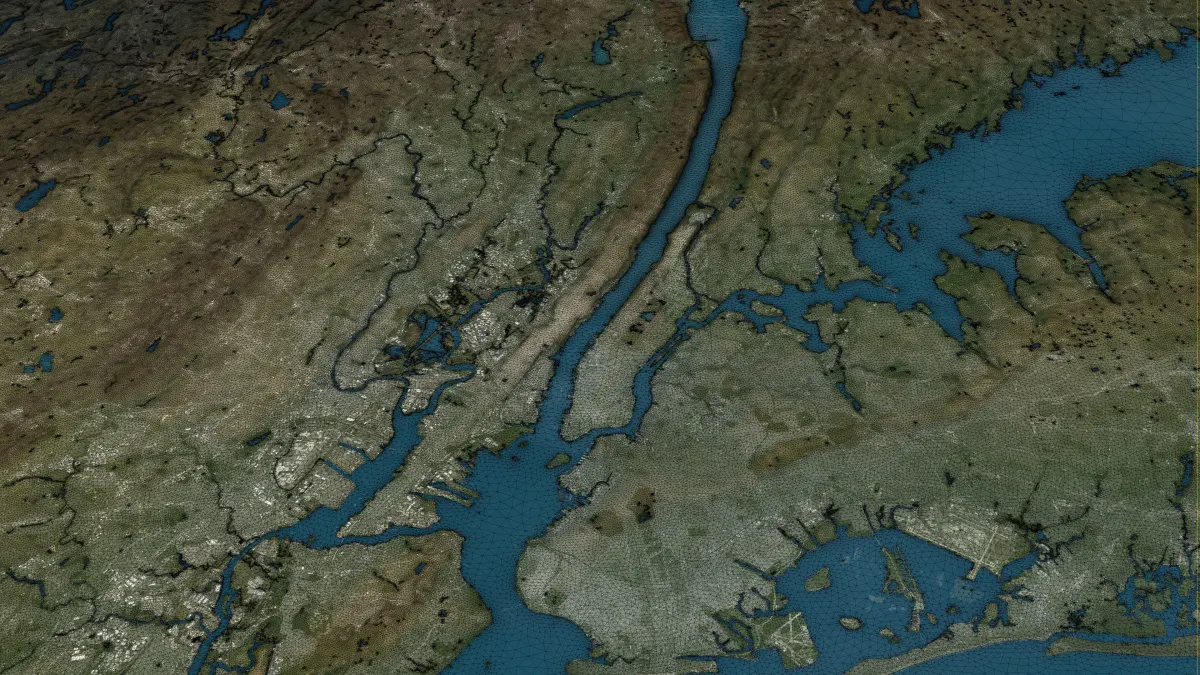 - Separate Land Surface and Water Bodies — Two distinct mesh objects with precise shorelines for realistic water features