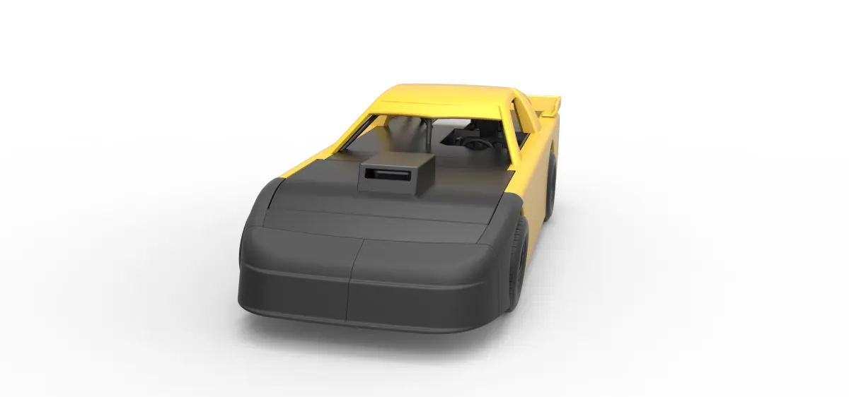 The model consists of parts: Air filter cover, Air filter, Air intake, Body, Engine, Exhaust tubes, Front rims, Front tires, Hood, Left exhaust pipes, Nose, Radiator, Rear left tire, Rear right tire, Rear rims, Right exhaust pipes, Rim covers, Seat part 1,2, Shell, Shifter, Spoiler, Steering wheel, Tank.