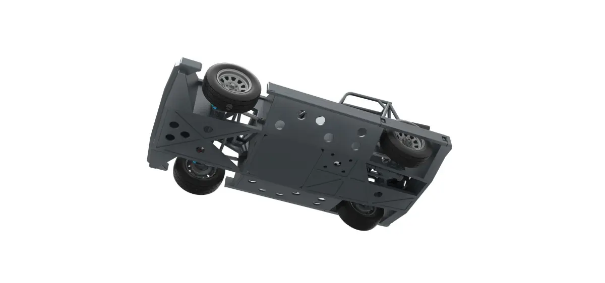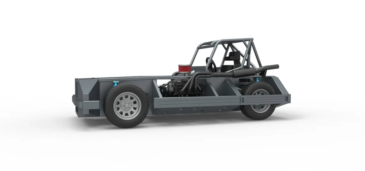 The model consists of parts: Air filter cap, Air filter, Air intake, Body, Box, Engine, Exhaust ends, Front rims, Fuel tank, Left exhaust pipes, Radiator, Rear right tire, Rear rims, Rear wheel guards, Right exhaust pipes, Seat part 1,2, Shifter, Steering shaft, Steering wheel, Tires.
