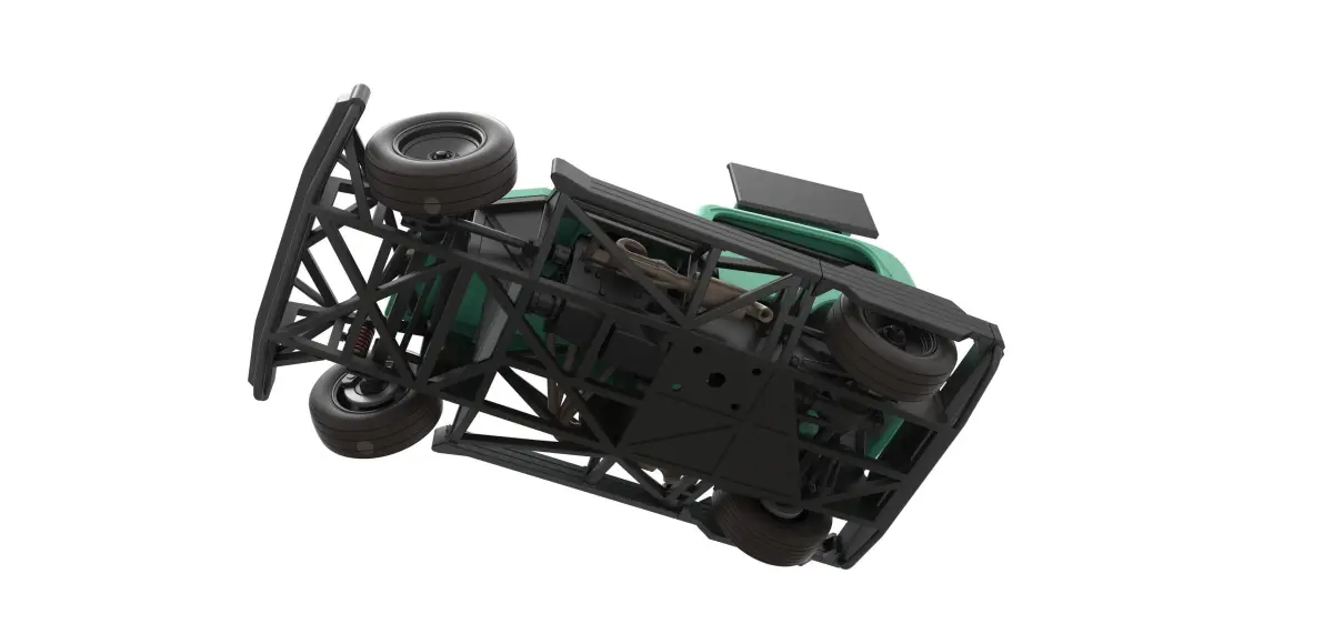 The model consists of parts: Air filter cap, Air filter, Air intake, Body, Engine, Front rims, Hood, Left exhaust part 1,2, Radiator, Rear right tire, Rear rims, Rear wheel guards, Right exhaust part 1,2, Seat part 1,2, Shell, Shifter, Steering wheel, Tank, Tires, Top wing central part, Top wing left part, Top wing right part.