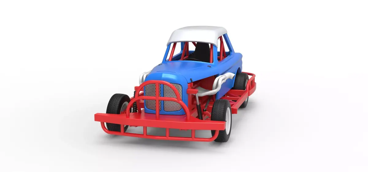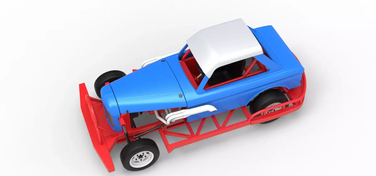 The model consists of parts: Air filter cap, Air filter, Engine, Fan, Front left grid, Front right grid, Front rims, Front tires, Hood, Left exhaust, Nose, Radiator, Rear lights, Rear rims, Rear suspension, Rear tires, Right exhaust, Seat part 1,2, Shell main part, Shifter. Steering wheel, Tank.