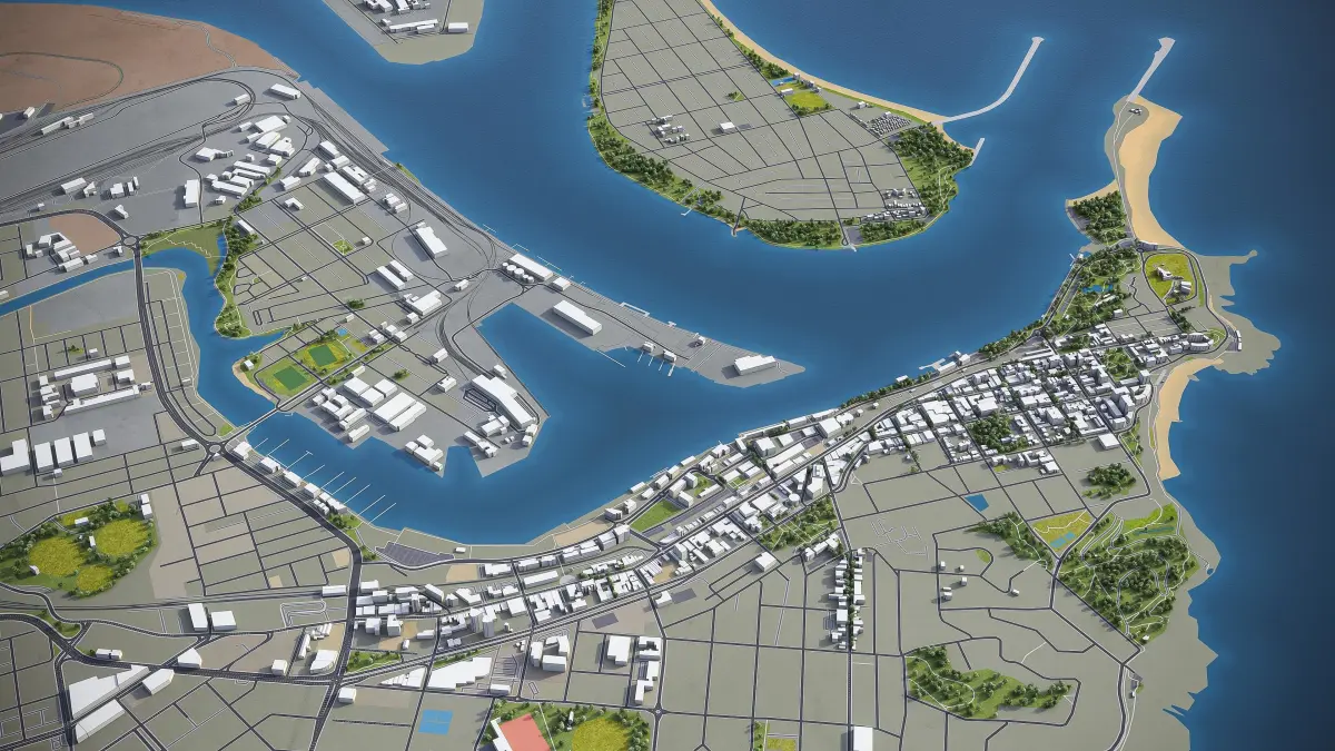 - Road and railway splines — for traffic animation, etc.