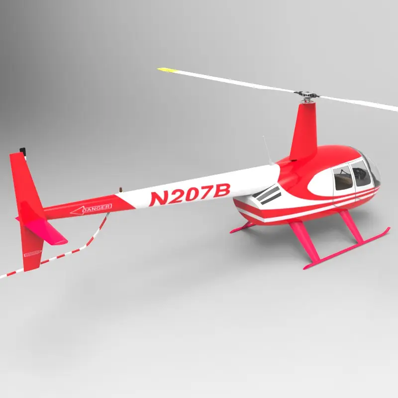 This helicopter is based on the design of the R44 civilian helicopter. This model helicopter is commonly used by TV and radio stations for its light weight and maneuverability.