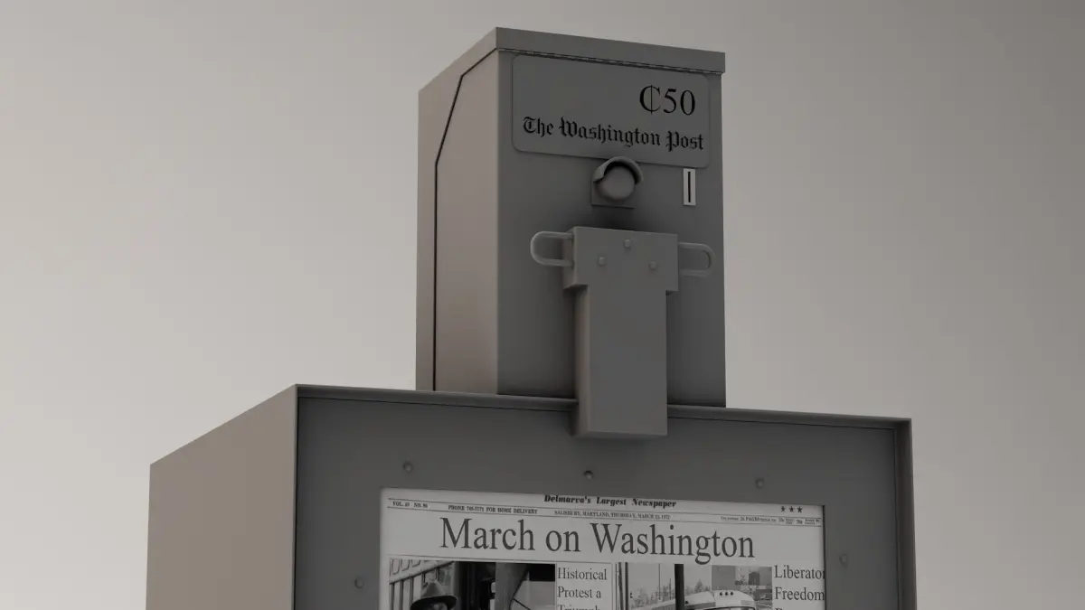 vendor, newspaper, news, stand, kiosk, machine, city, sidewalk, urban, architecture, block, sign, publication, magazine, shop, rack