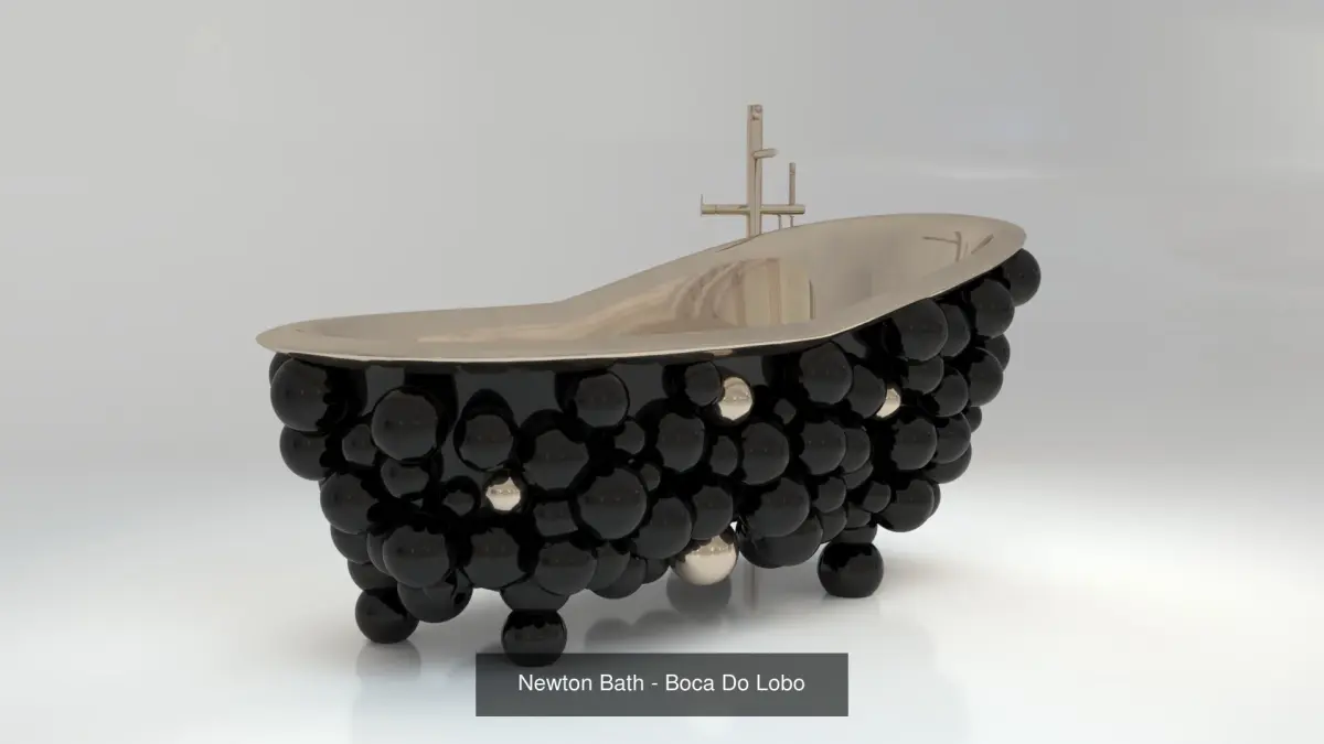 This collection includes a set of 4 models from the Newton series by the brand Boca Do Lobo consisting of a Bathtub, a Wash basin , a Towel Rack and a Console
