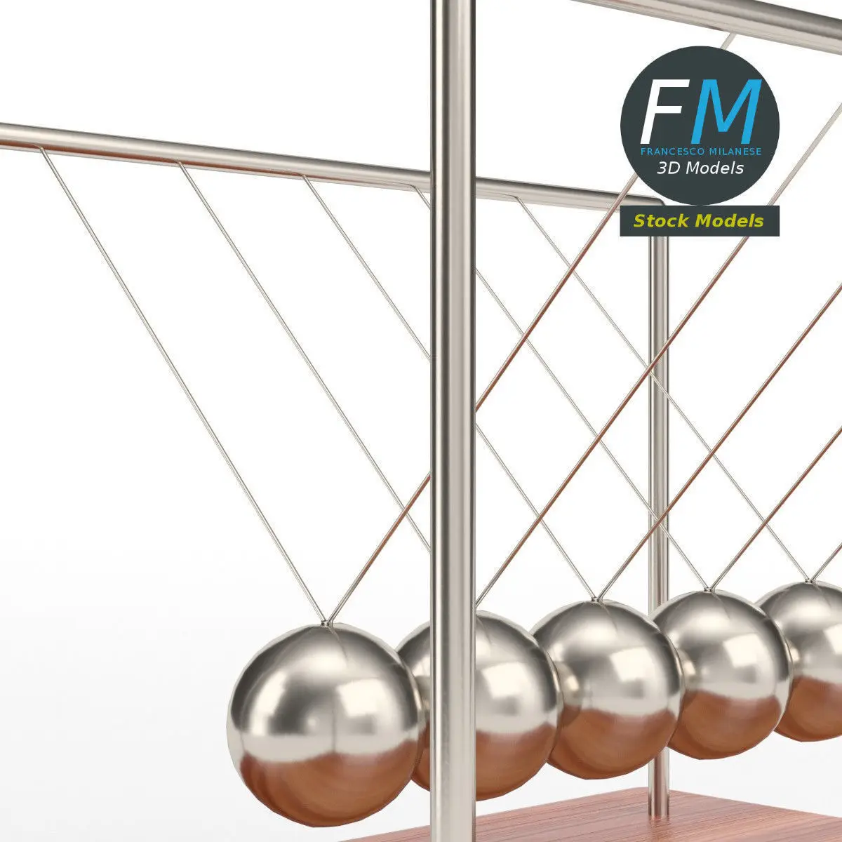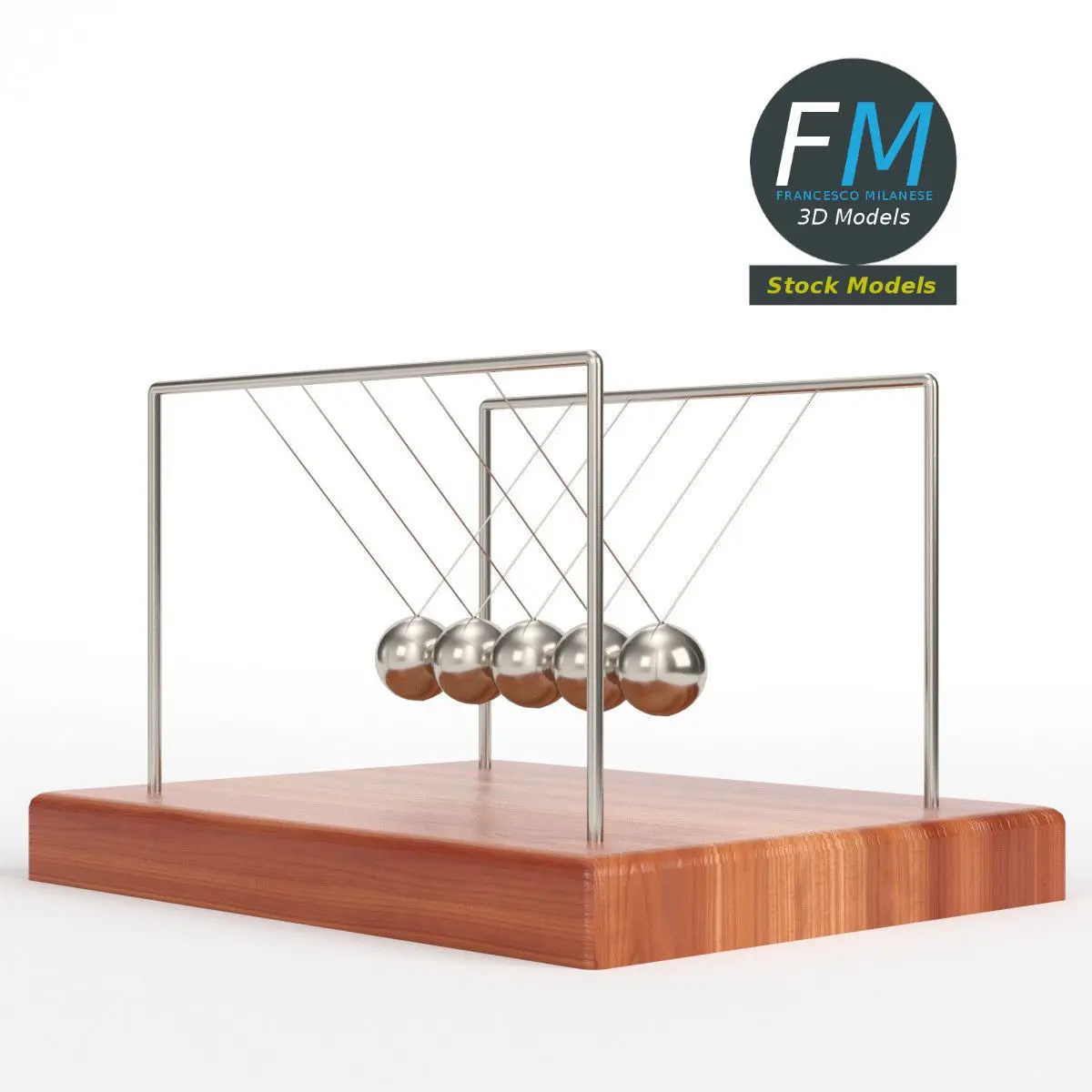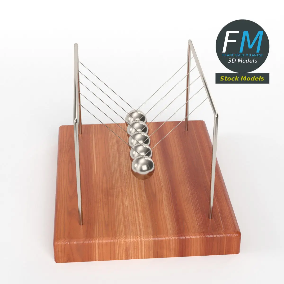 Newton's cradle 3D Model, nr. 2 in my collection. 6 individual objects (base, 5 spheres; so, you can easily rotate or even animate them), sharing the same non overlapping UV Layout map, Material and PBR Textures sets. Production-ready 3D Model, with PBR materials, textures, non overlapping UV Layout map provided in the package.